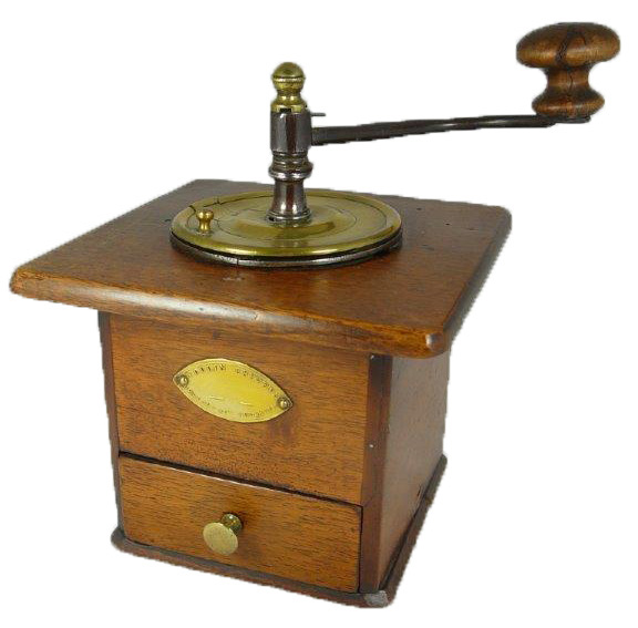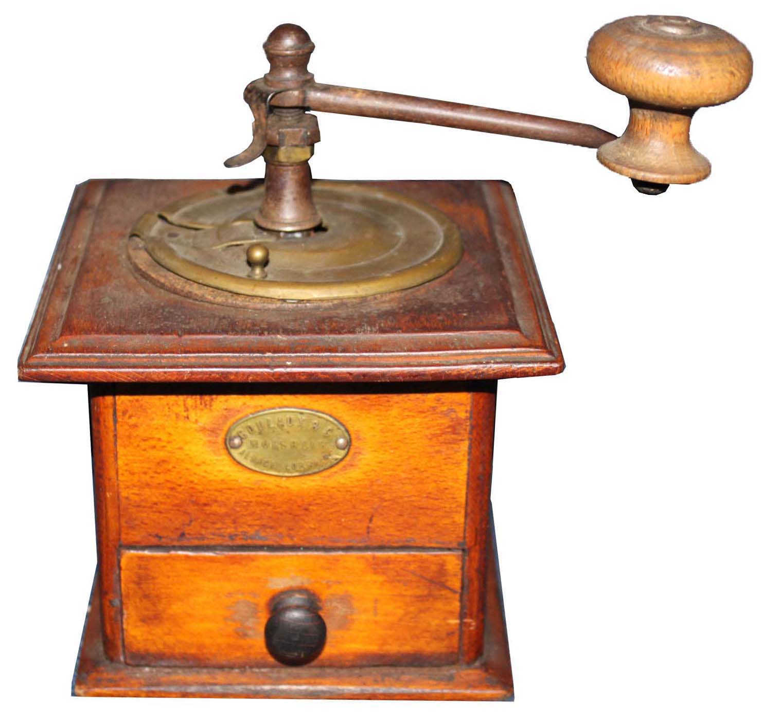 Côtés collés, tiroir encastré, trémie en laiton.