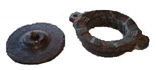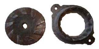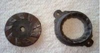La meule plate et le rotor sont présentés ci dessous recto et verso. La trace de la clavette de fixation est visible sur la partie mobile de la seconde noix.