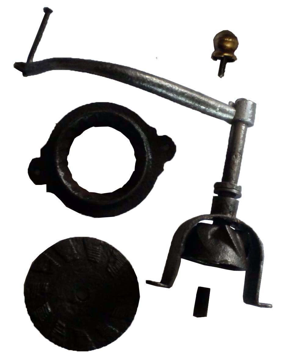 La meule plate s'appuie sur le dessous de la première noix, elle est bloquée par la clavette.