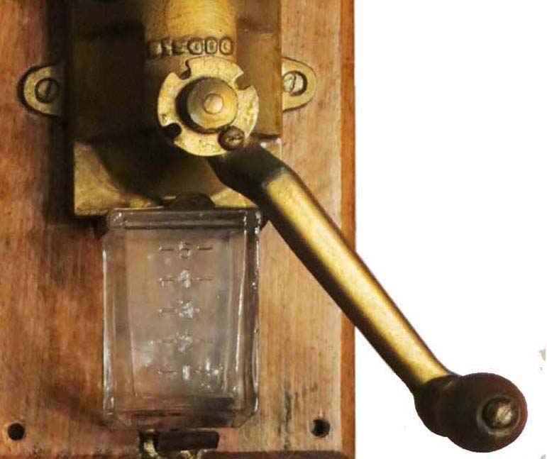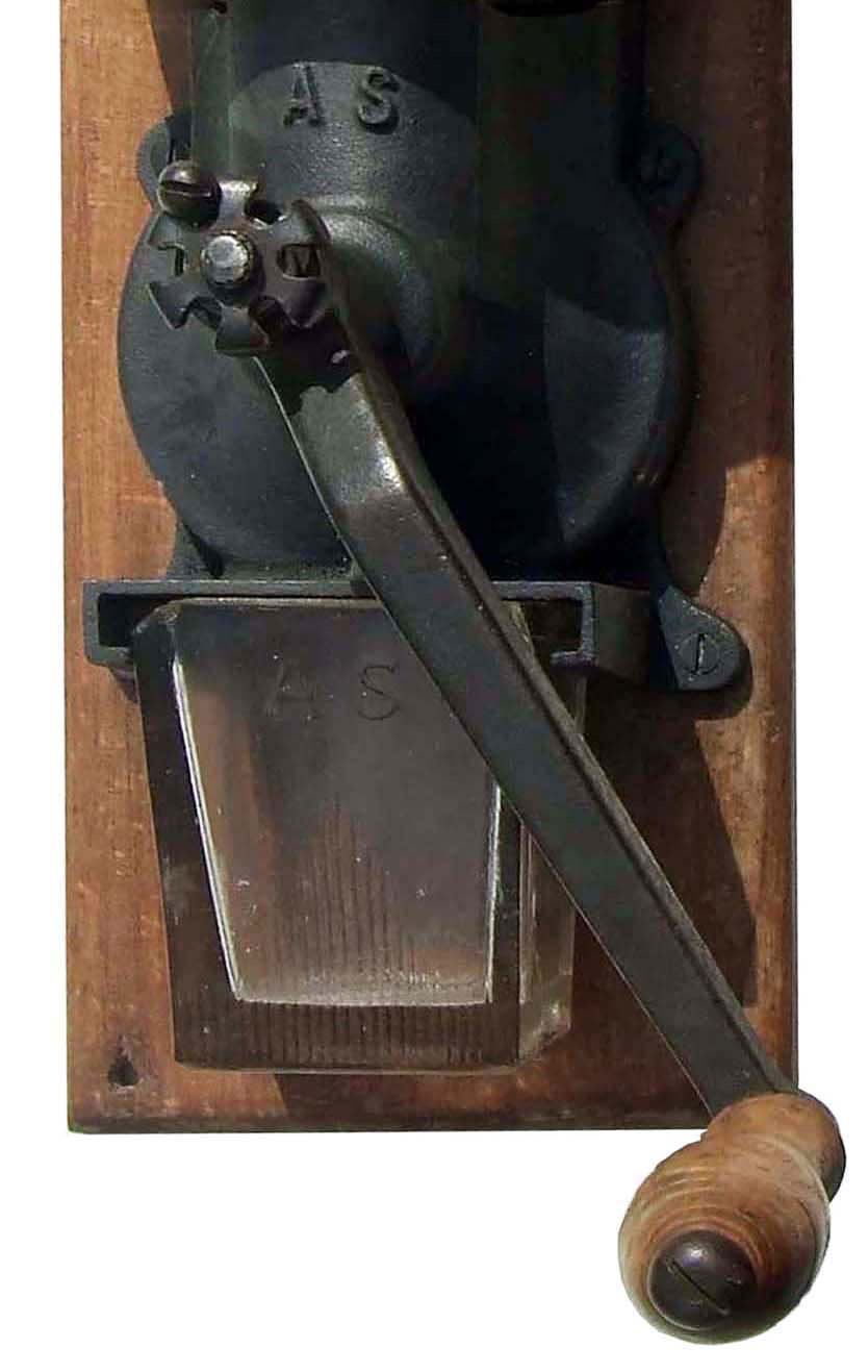 - trémie de 300 g cachant le mécanisme jusqu'au godet, avec sa manivelle sur le côté, modèle breveté AS.