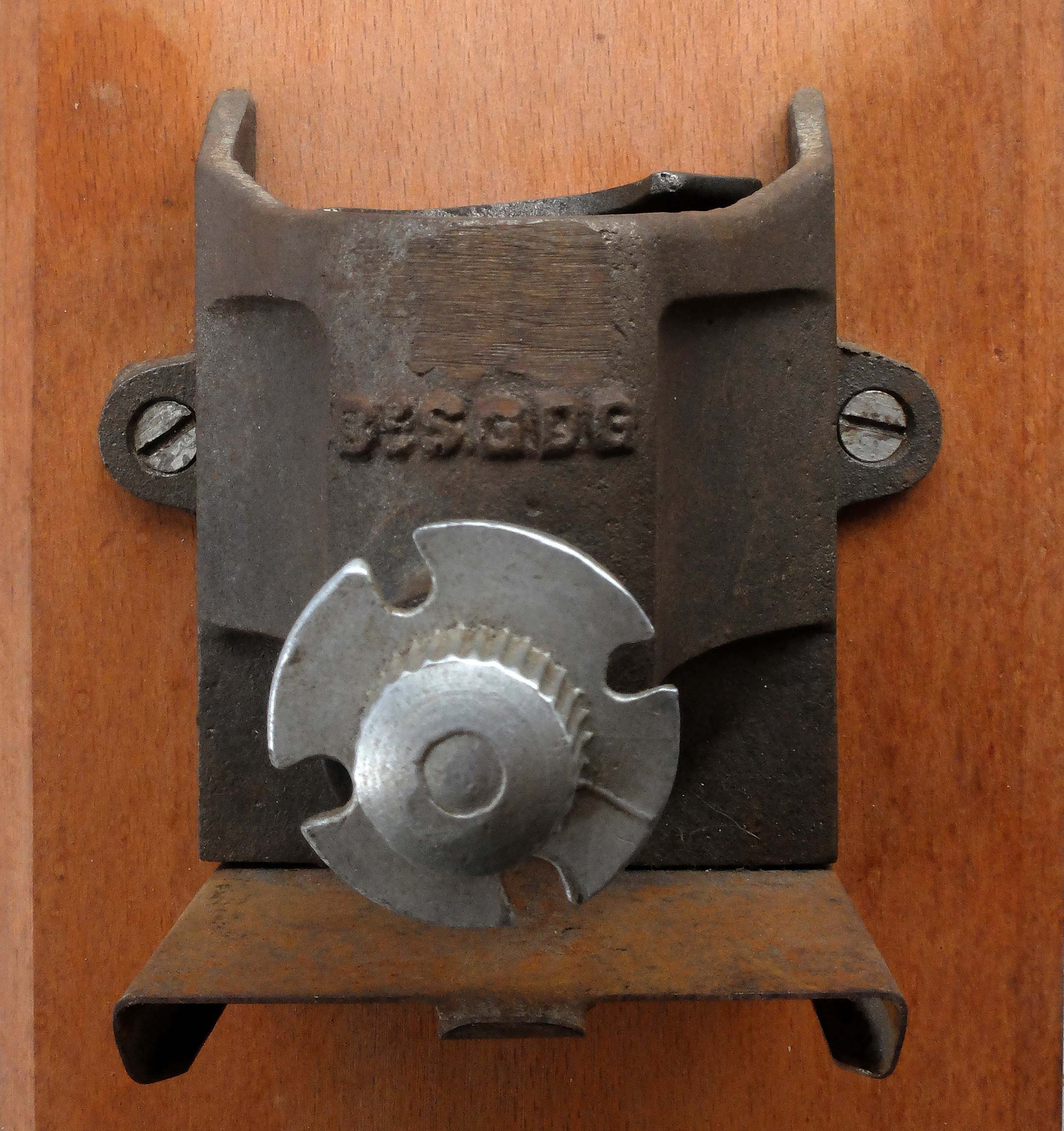 - 2. carters marqués "AS - Bte SGDG" sur 2 lignes au dessus de l'axe, avec glissières rapportée pour maintenir le godet,