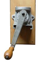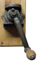 - trémie cachant le mécanisme jusqu'au godet, percée d'un trou en façade qui permet de passer l'axe sur lequel se fixe la manivelle,