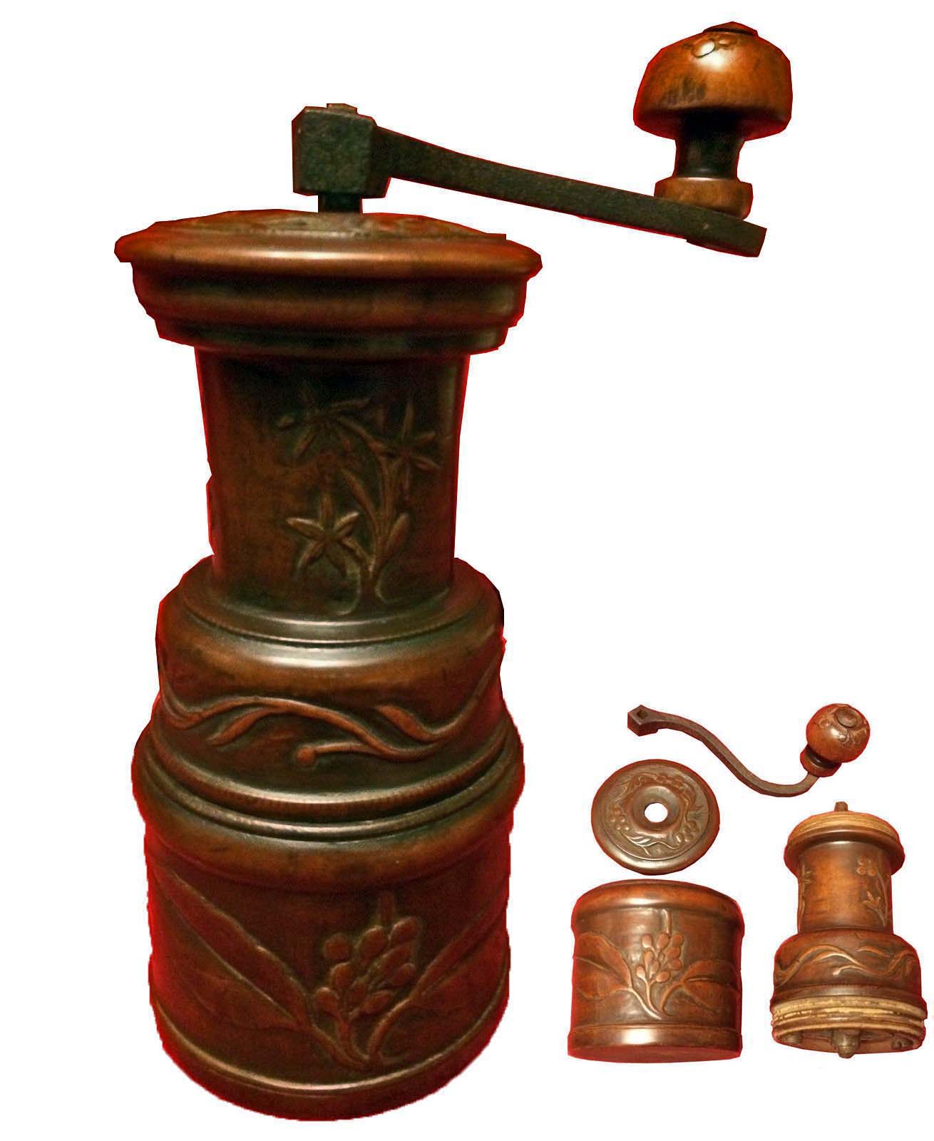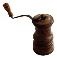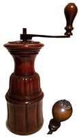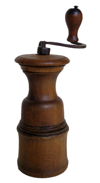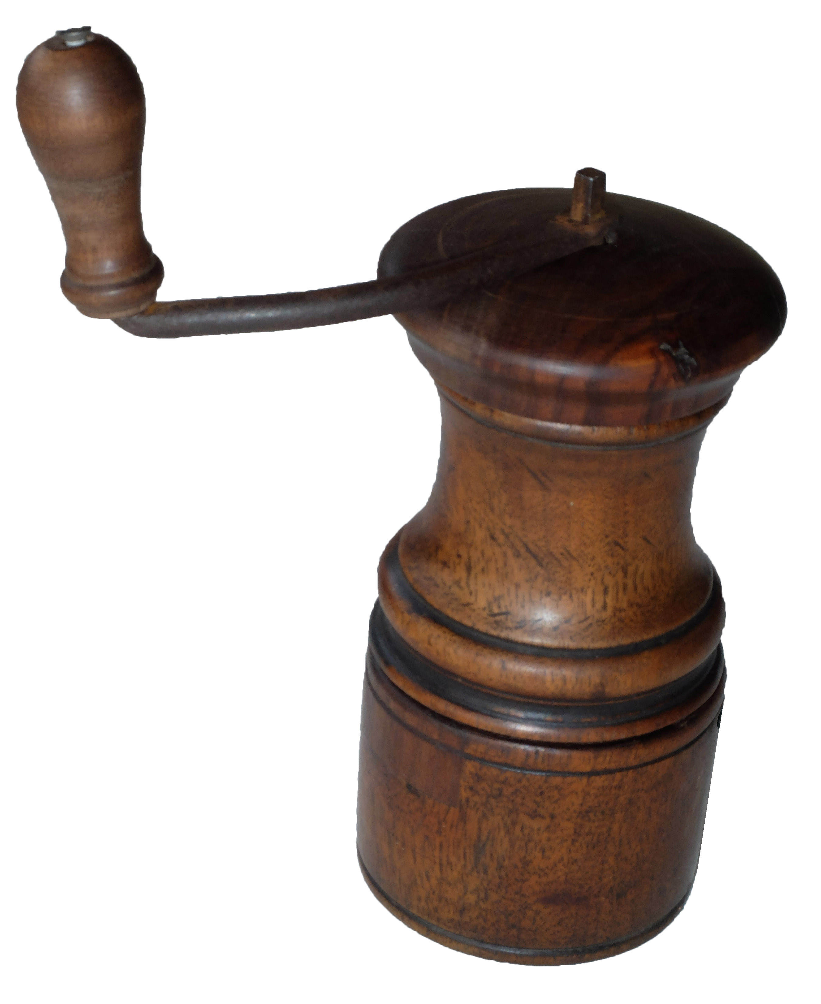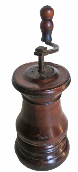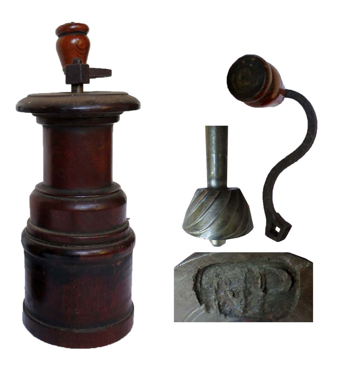 Ces moulins en bois (en général le noyer) tourné du XVIIIéme et XIXème siècle se dévissent en 3 parties.