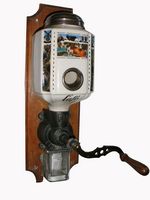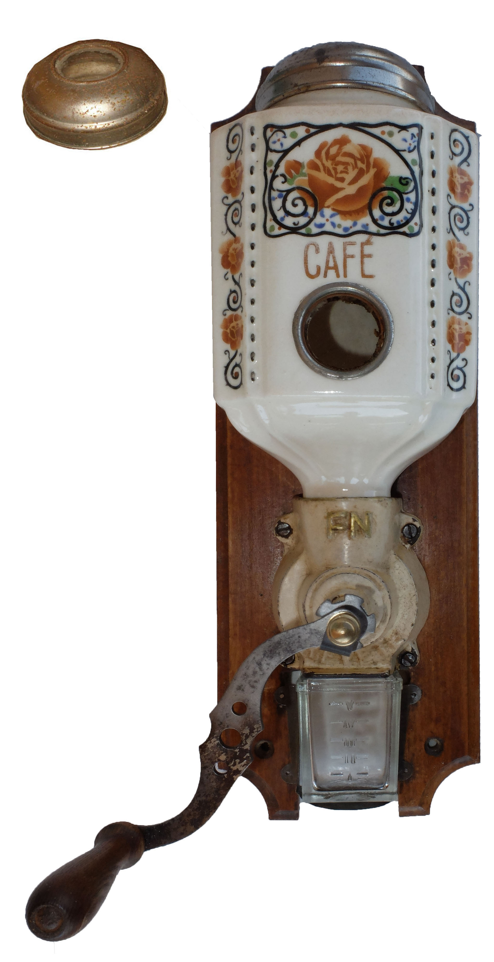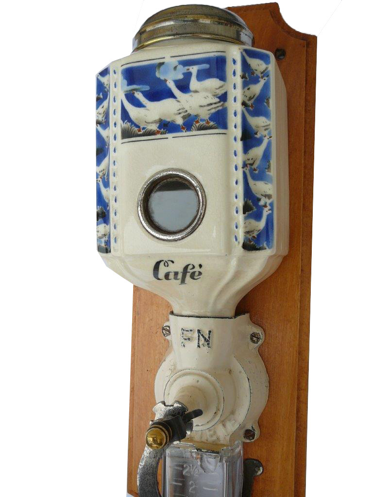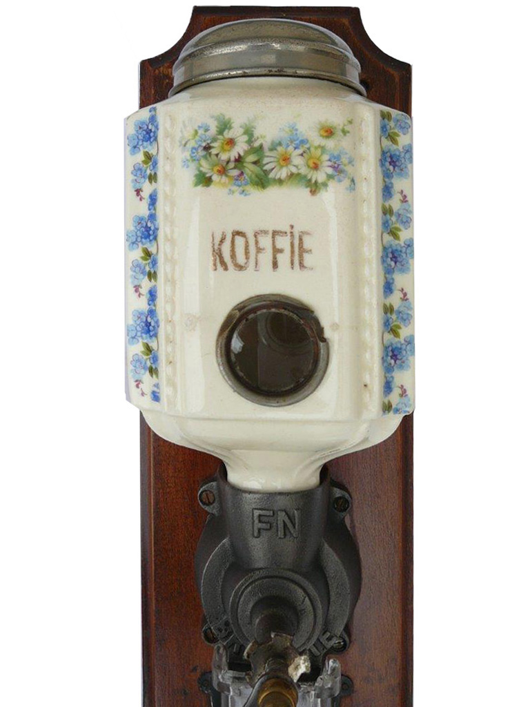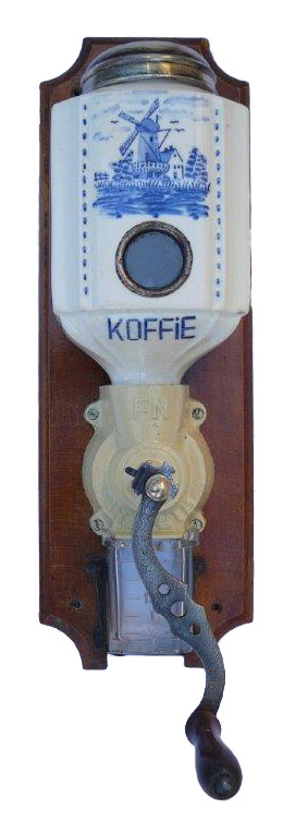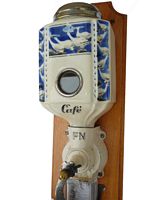 Elle est porte l'inscription "CAFE ou KOFFIE" en noir ou en doré, et suivant le décor, la calligraphie peut être différente. Elle est parfois être décorée sur ses trois faces visibles et comporte toujours un hublot en verre cerclé de métal.