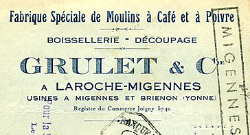 Les Etablissements Grulet établis à Migennes dans l'Yonne, fondés en 1900 par Emile-Edmond Grulet, né le 28 juin 1884 à Paris 5°, décédé le 12 Juin 1971 à Joigny.