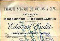 Certains type de moulins de table ou muraux ont été revendus par Manufrance ou le BHV. D'autres portent une plaque laiton en losange marquée Etablissements métallurgiques A.L Paris.