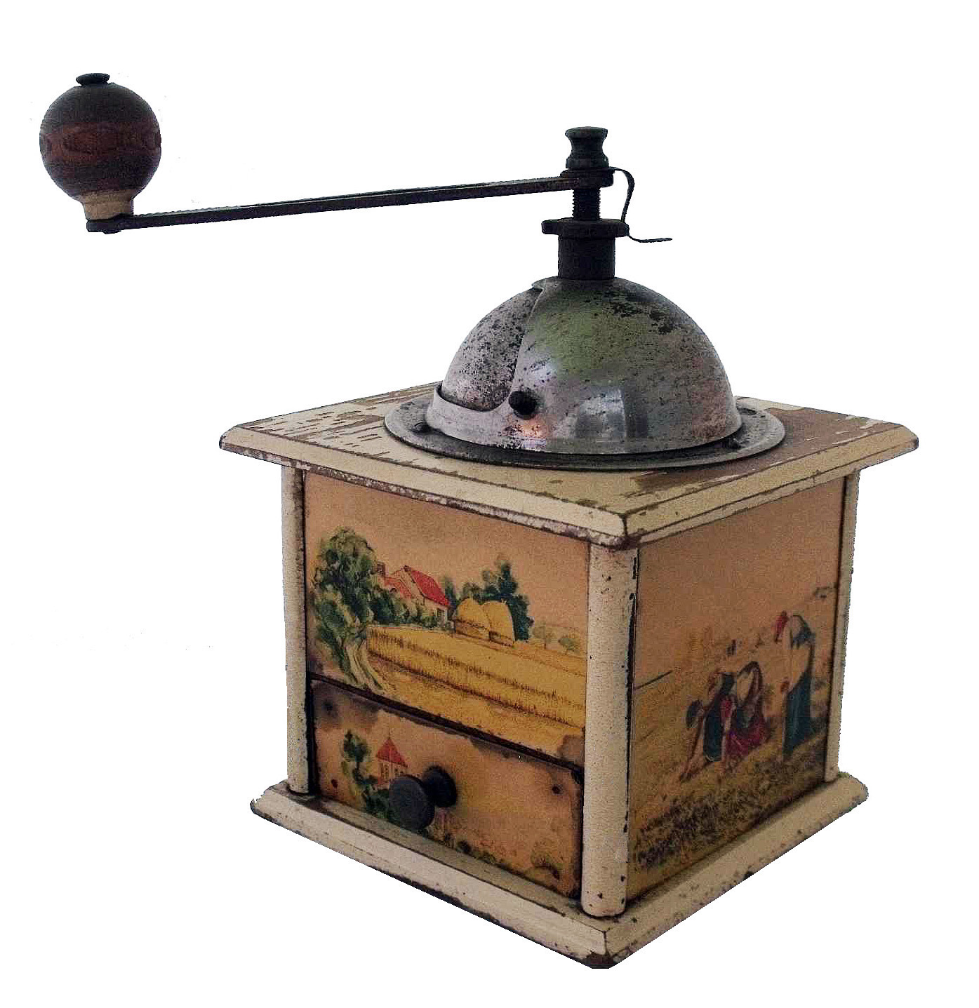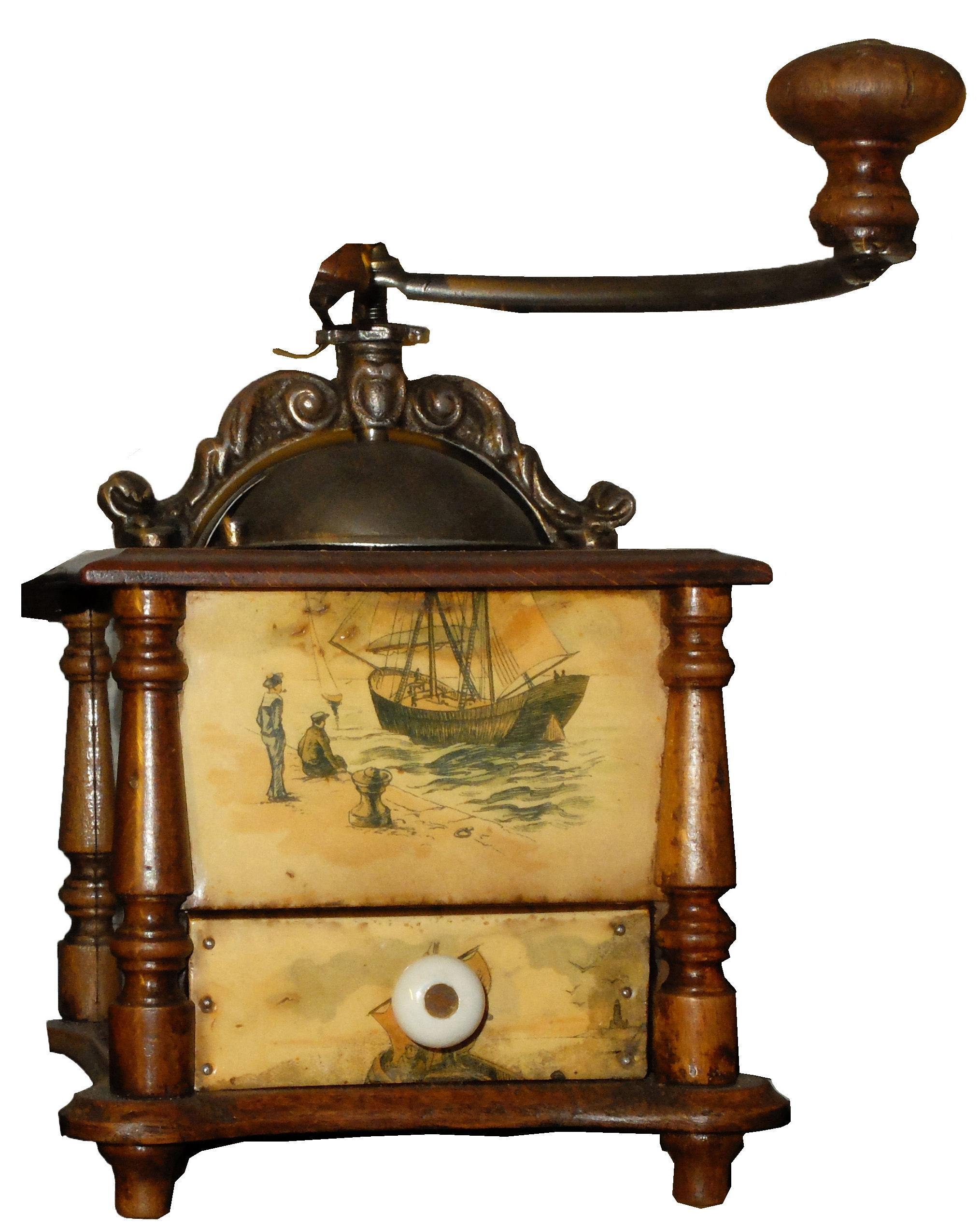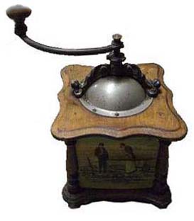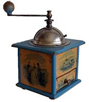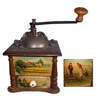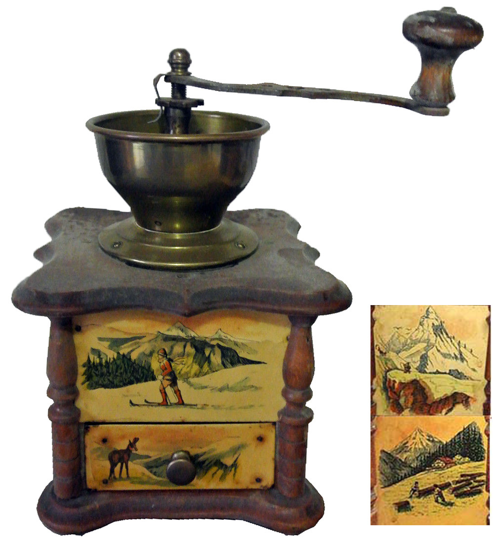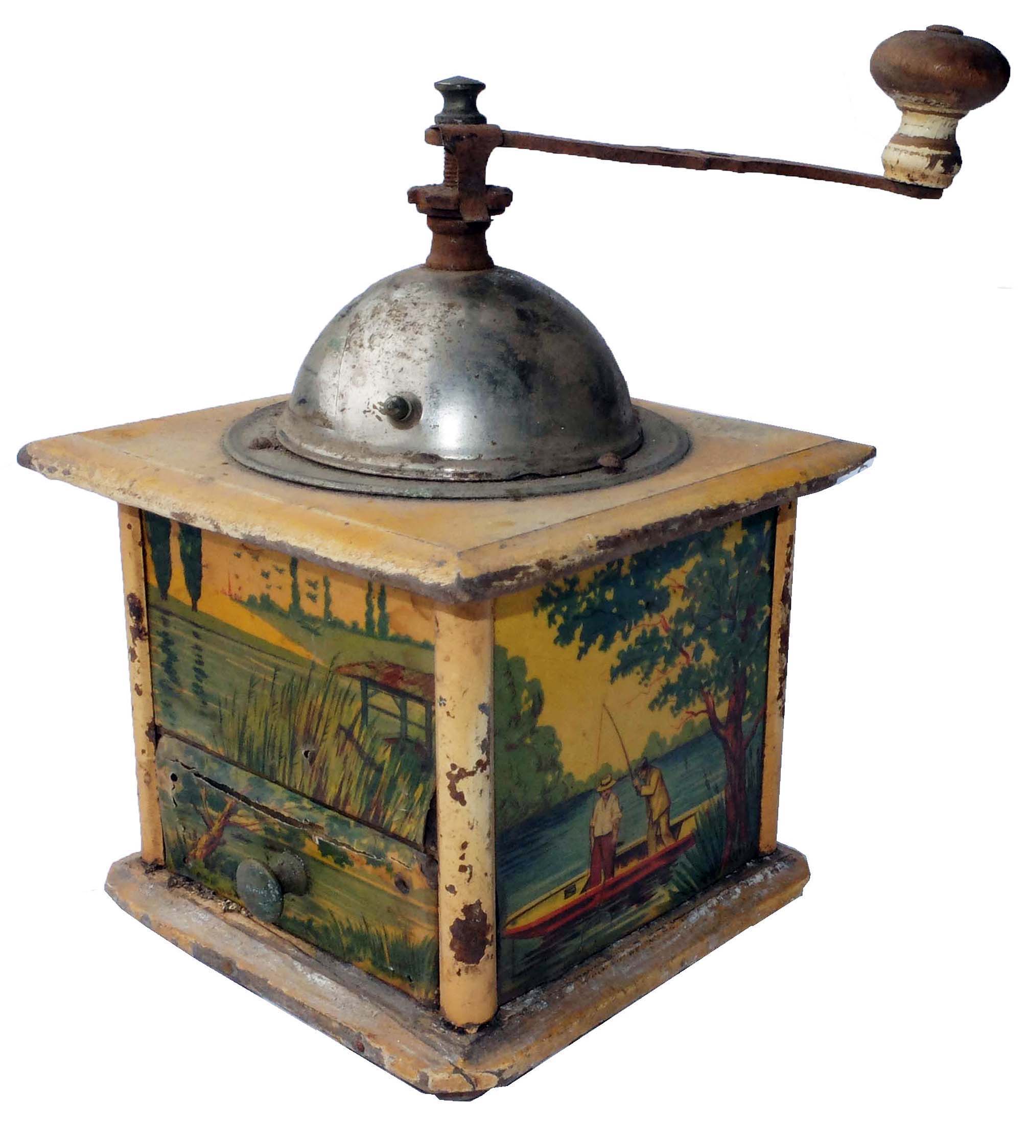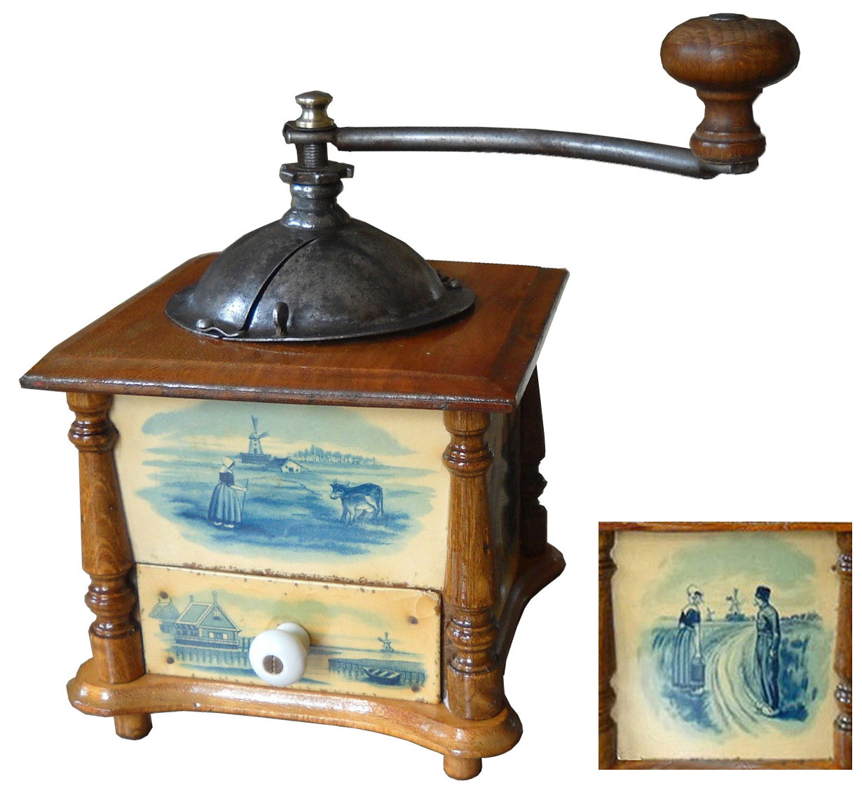 En général, ces moulins comportent 2 images en glacoïde, une pour la façade et une reproduite sur les 3 côtés. Certains décor porte la marque grulet au sphinx au bas de la partie haute de la façade.