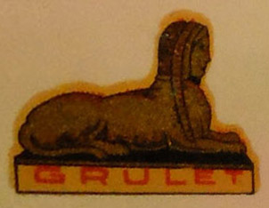 GRULET décalcomanie au sphinx couché, cartouche blanc |