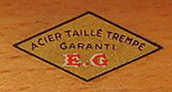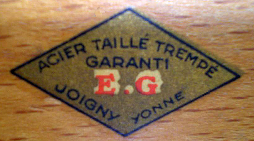 EG losange décalcomanie acier taillé trempé garanti E.G Joigny Yonne |