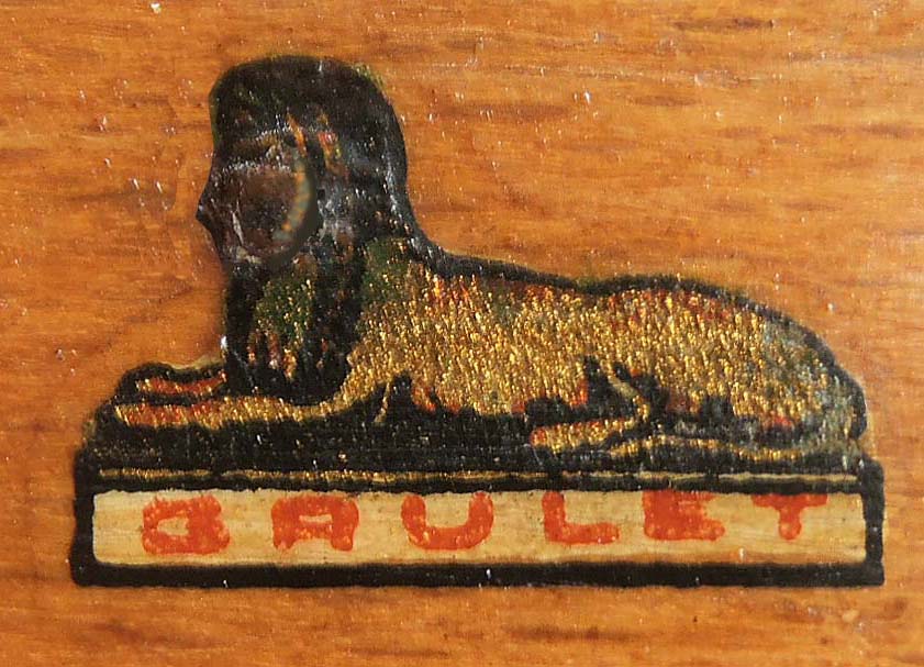 GRULET décalcomanie au sphinx couché, cartouche doré, |