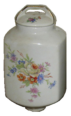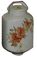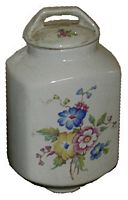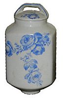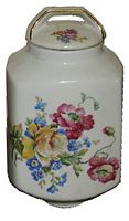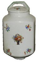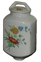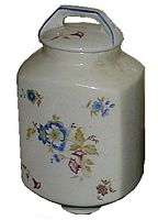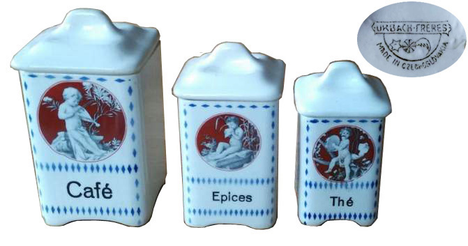 Il existe des couvercles en faïence assortis au décor de l trémie, munis d'une poignée et des couvercles en aluminium.