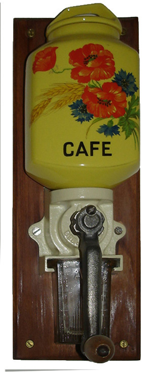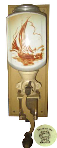 Pour les moulins des années 50, le décalcomanie au sphinx est souvent apposé sous le réceptacle en verre moulé.