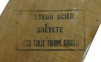 La planche rectangulaire, en hêtre, mesure 295 mm de haut et 70 mm de large. Les cotés sont biseautés et les coins vifs. Elle comporte 4 trous pour être fixée au mur. Au verso figure dans un rectangle la mention "broyeur en acier - breveté - acier taillé - trempé garanti". Elle peut être vernie ou peinte en crême.