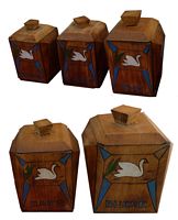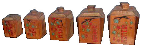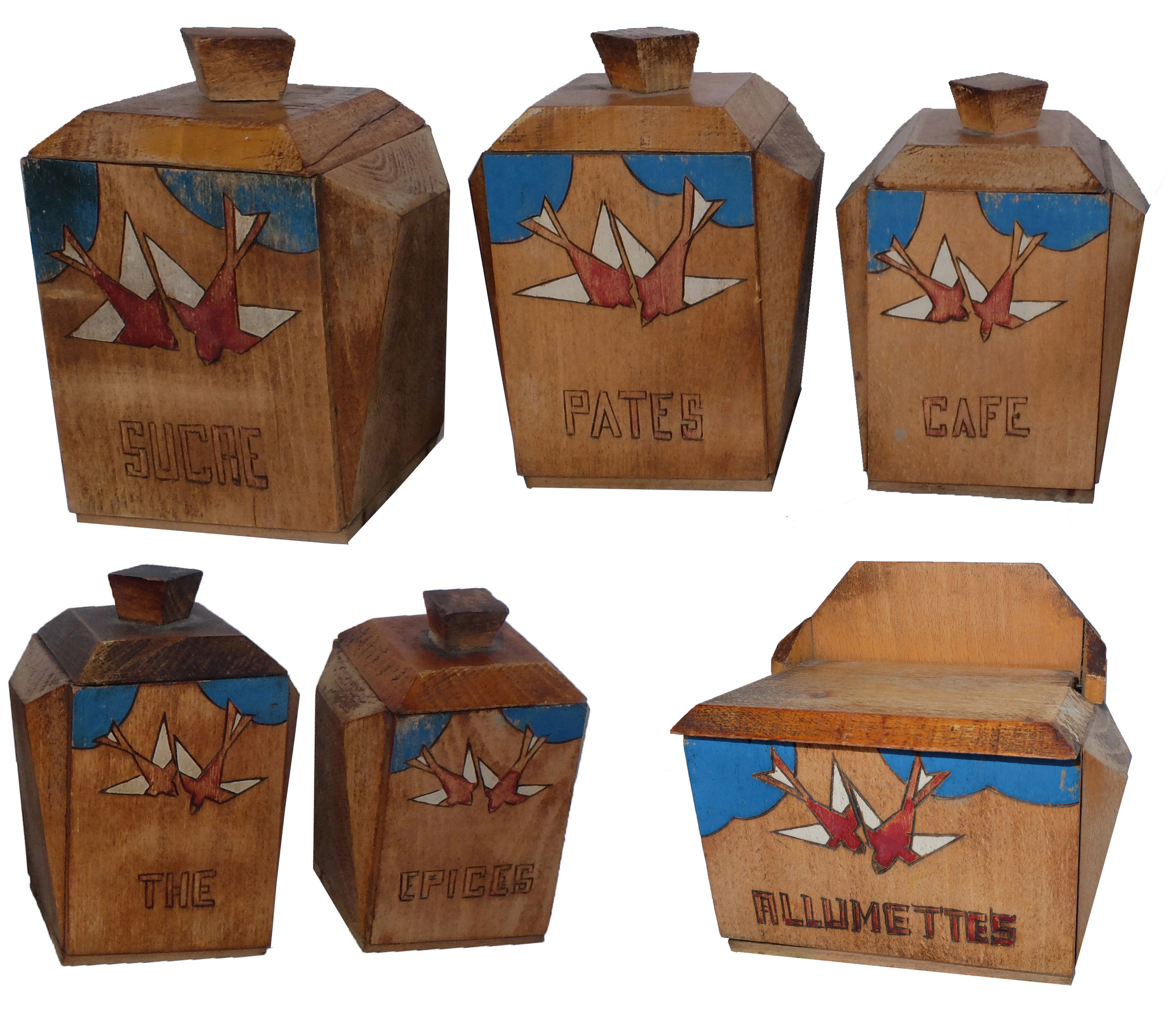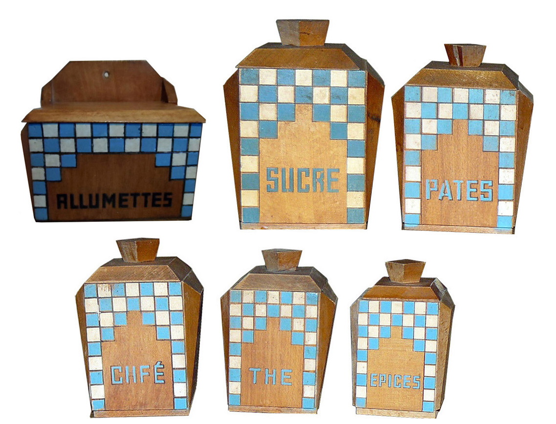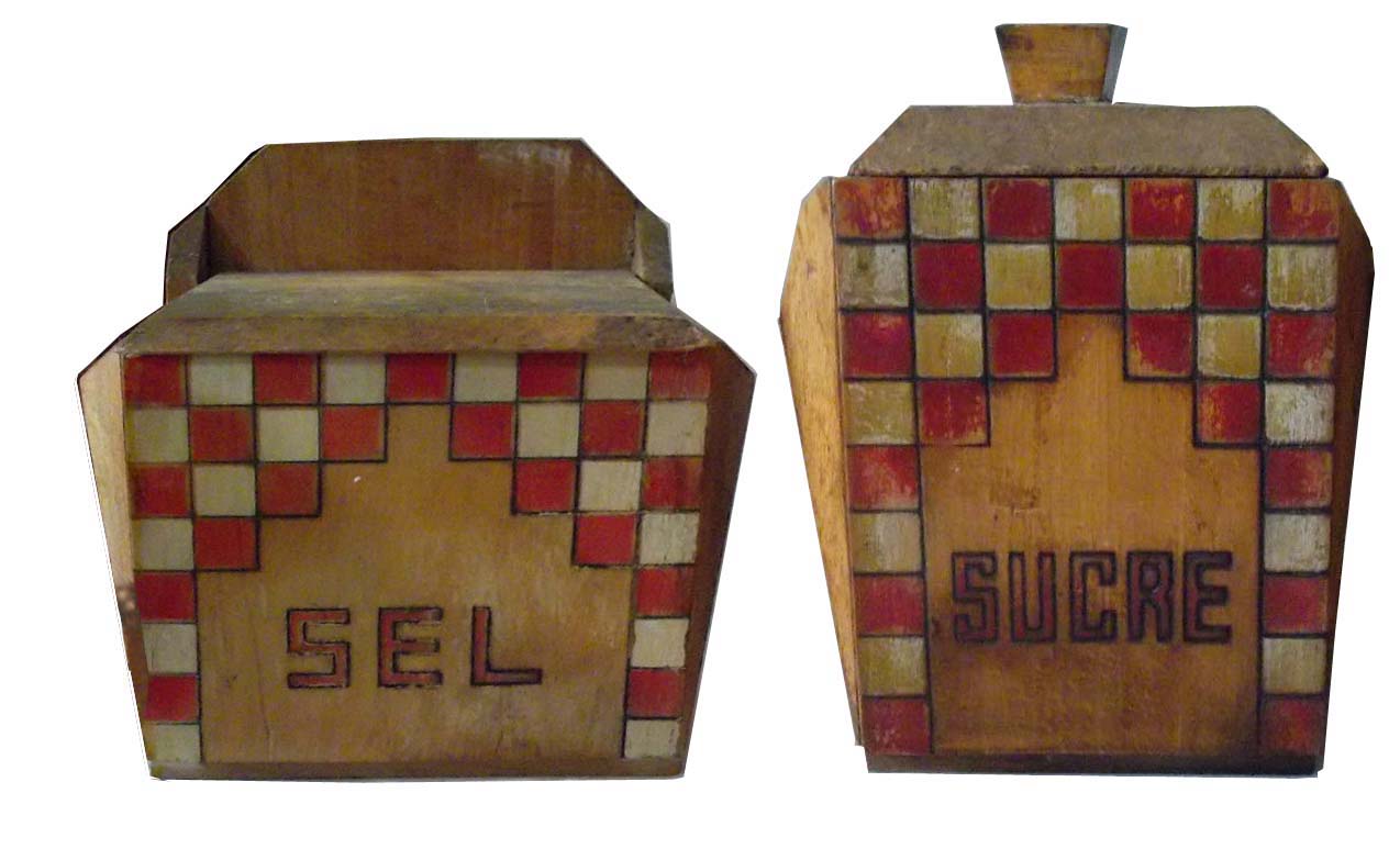 Des séries de pots à épices en bois ont été également produites ornées des mêmes décors. Il existe aussi des boîtes murales pour allumettes.