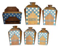 Ces décors peuvent se retrouver sur des séries de pots à épices (poivre - pâtes - épices - thé - café - sucre), de boite (sel - alumettes).