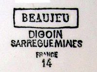 Pour celles qui le sont, en général au dos, peuvent être cités le nom du faïencier, la ville où est implantée l'usine, voir le modèle. D'autres signes apparaissent également qui sont difficilement déchiffrables.