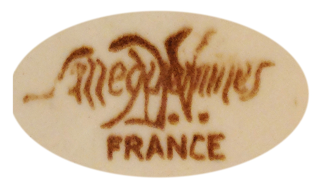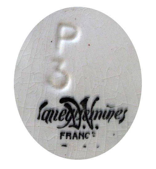 Les initiales FD désignent probablement la Faïencerie Deshouliéres à Chauvigny qui a fournidans les années 1930 aux magasins Goulet Turpin des articles en faïence avec un décor spécifique aux 3 marguerites.