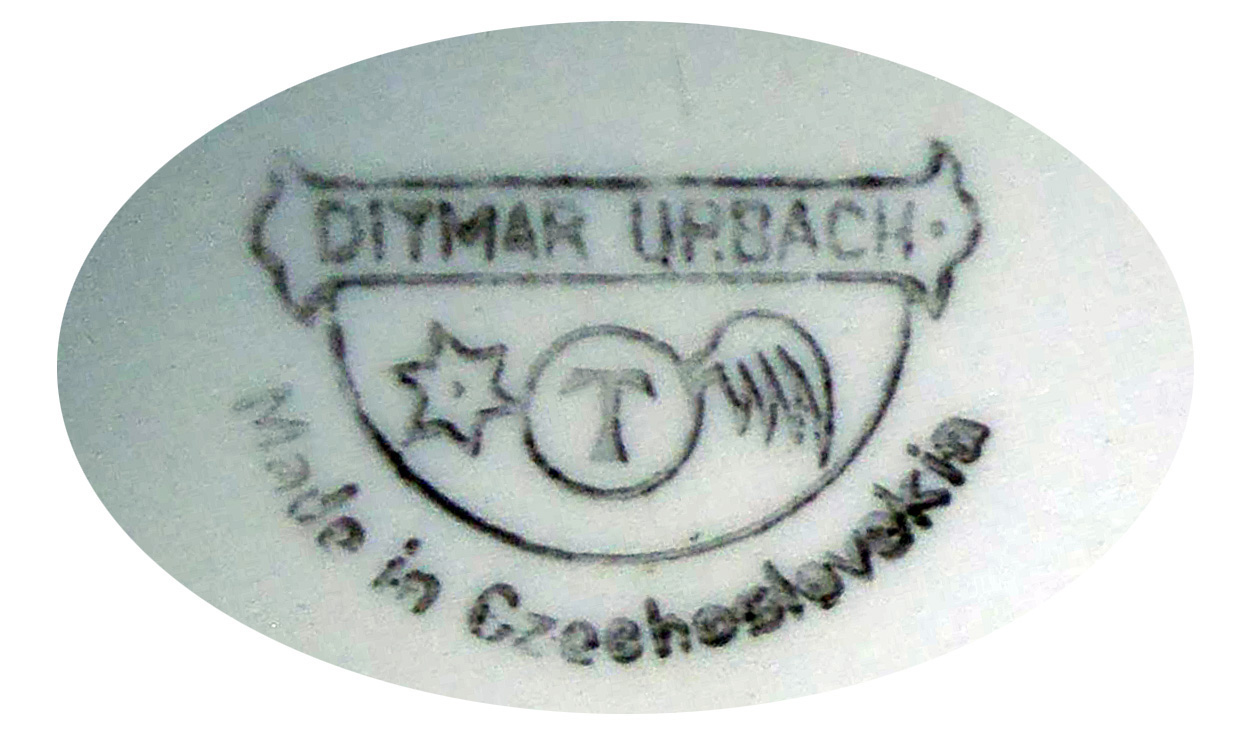 Ditmar Urbach était spécialisée dans les faïences et porcelaines de Bohême. Elle a été créée en 1882 par les frères URBACH dans une partie du territoire Autrichien devenue en 1918 la Tchécoslovaquie. La compagnie eut son heure de gloire à partir de 1910 et a disparu en 1945.