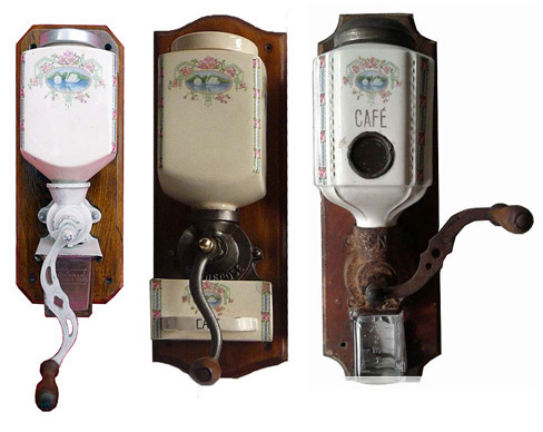 De nombreux fabricants français, voire distributeurs ont proposé des moulins muraux à trémie en faïence :