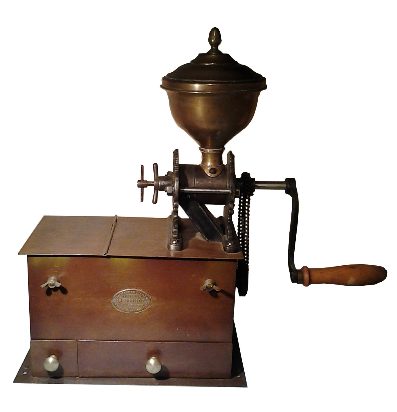 Un autre catalogue paru en juillet 1914 intitulé H. Alliot / M. Alliot fils successeur, maison basée 9, rue Jules Vallès à Paris (XIiéme), présente une production de moulins qui s'est enrichie de modèles de table, de comptoir type C, ou AB américain, de poivrières à l'instar de la fabrication Peugeot de l'époque.