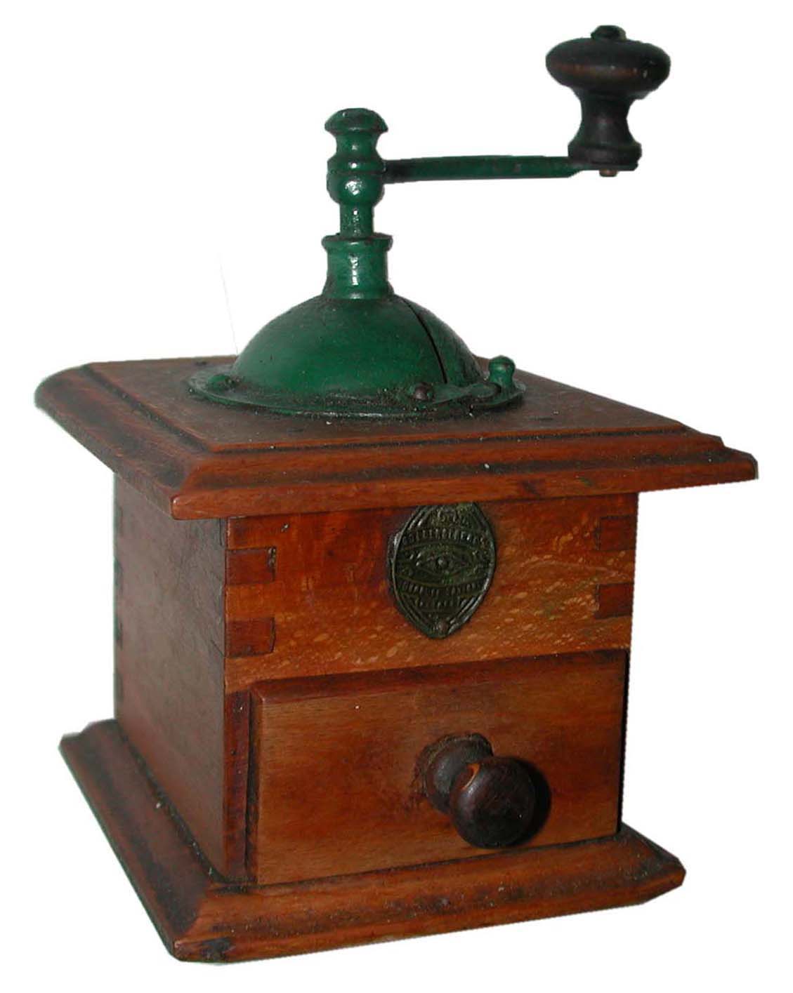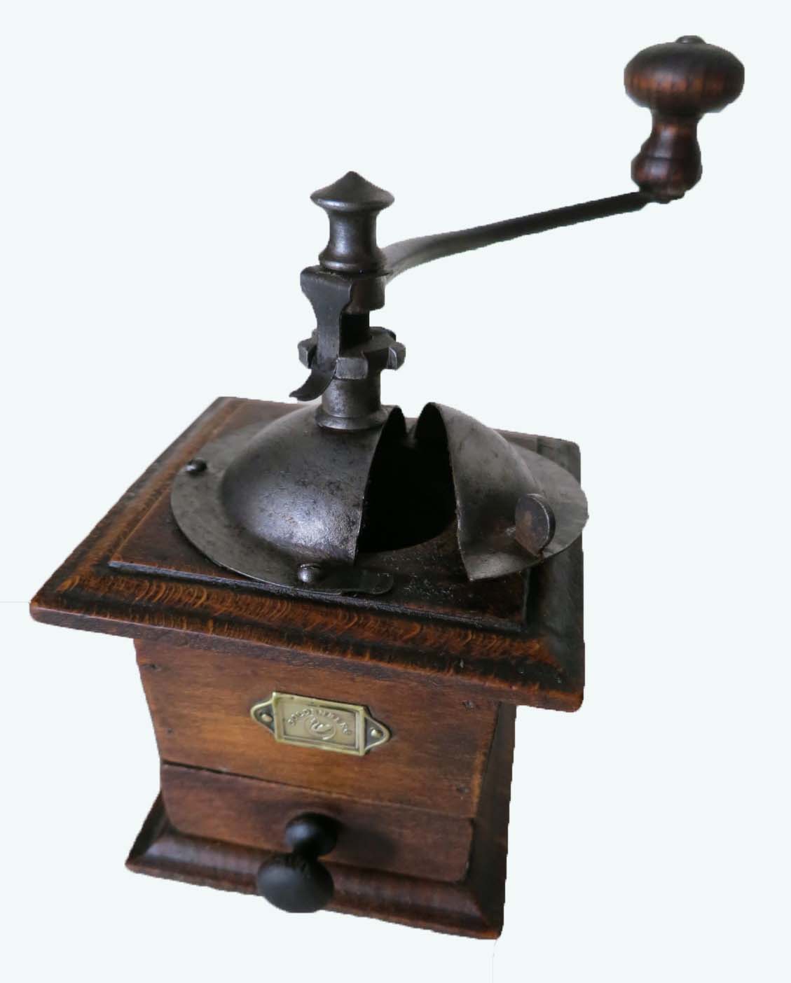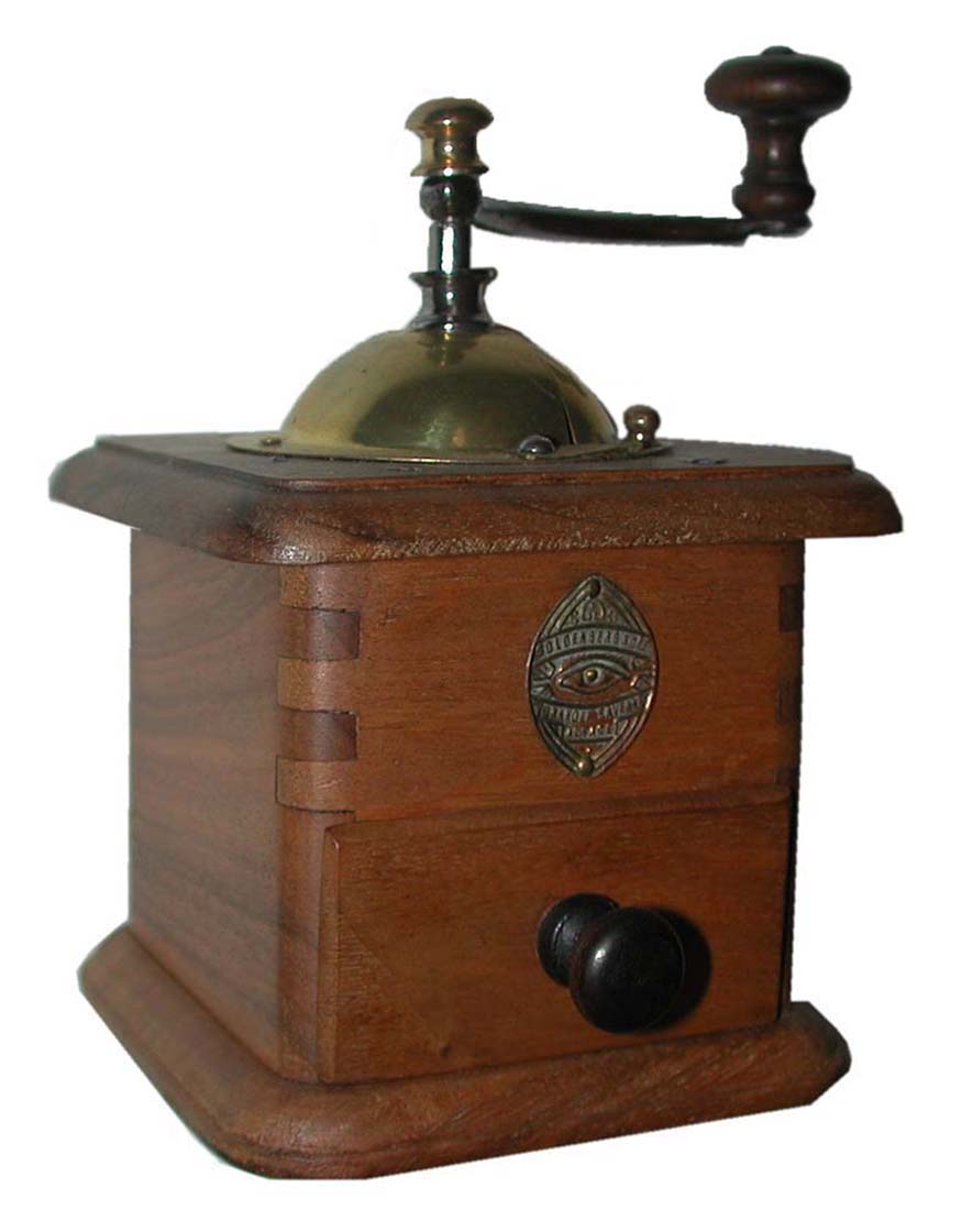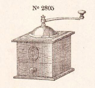 A partir du catalogue 1918, ce moulin apparait avec angles arrondis et assemblage par tenons et mortaises. Le dessus et le dessous sont vissés sur la caisse par 4 vis à tête fraisée - tiroir en appui. Ils ont également les angles arrondis et la doucine disparaît au profit d'un bord arrondi.