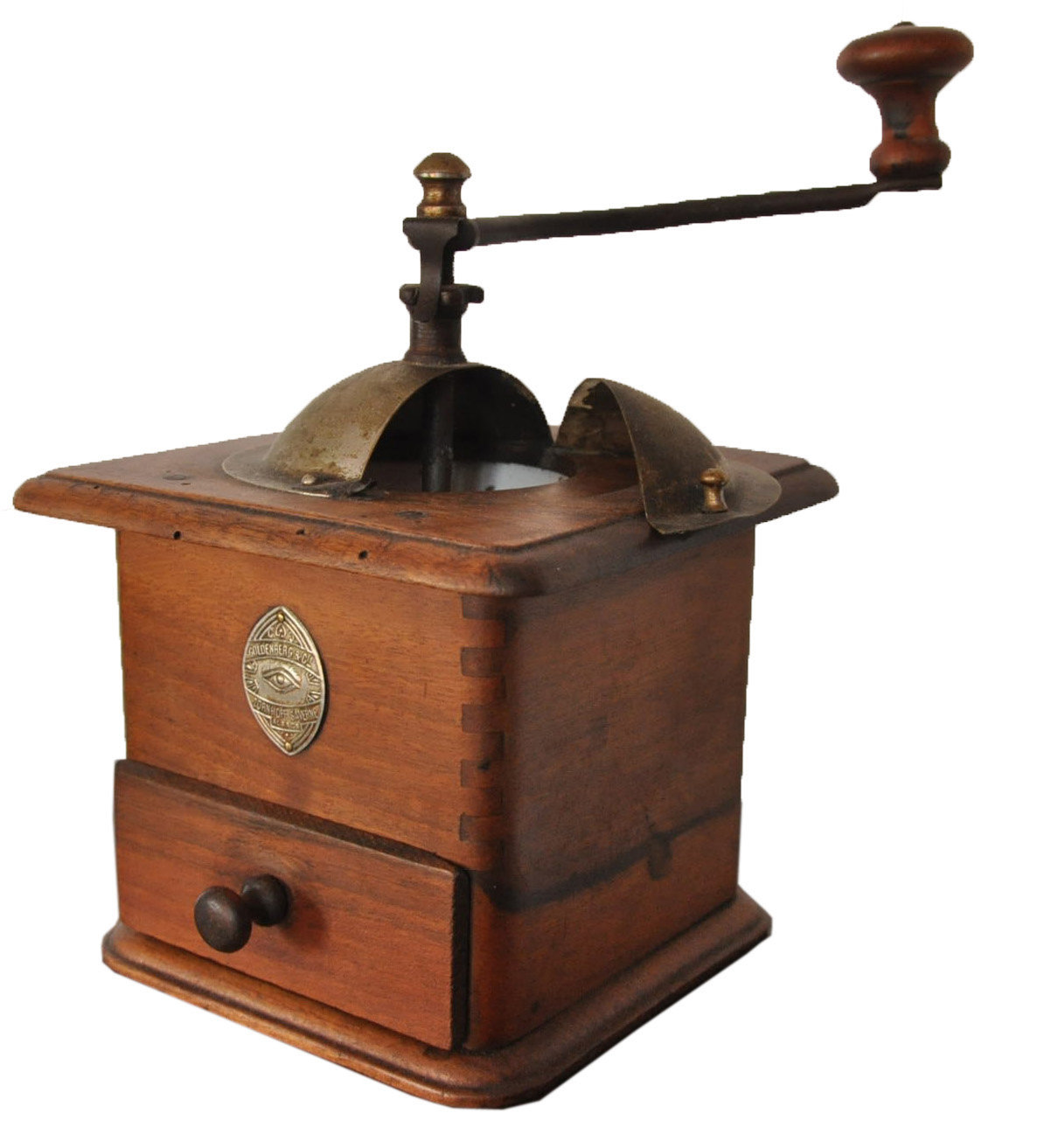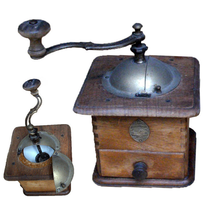 Cette première évolution voit le tiroir en appui et non plus encastré et l'échange de la manivelle ronde contre une manivelle plate ajourée avec une excroissance en son milieu qui rend encore plus luxueux ce moulin. Deux nouvelles tailles apparaissent, la 0 et la 5. Le tiroir est constitué de planchettes en hêtre clouées entre elles. Une planchette en noyer est collée en façade.
