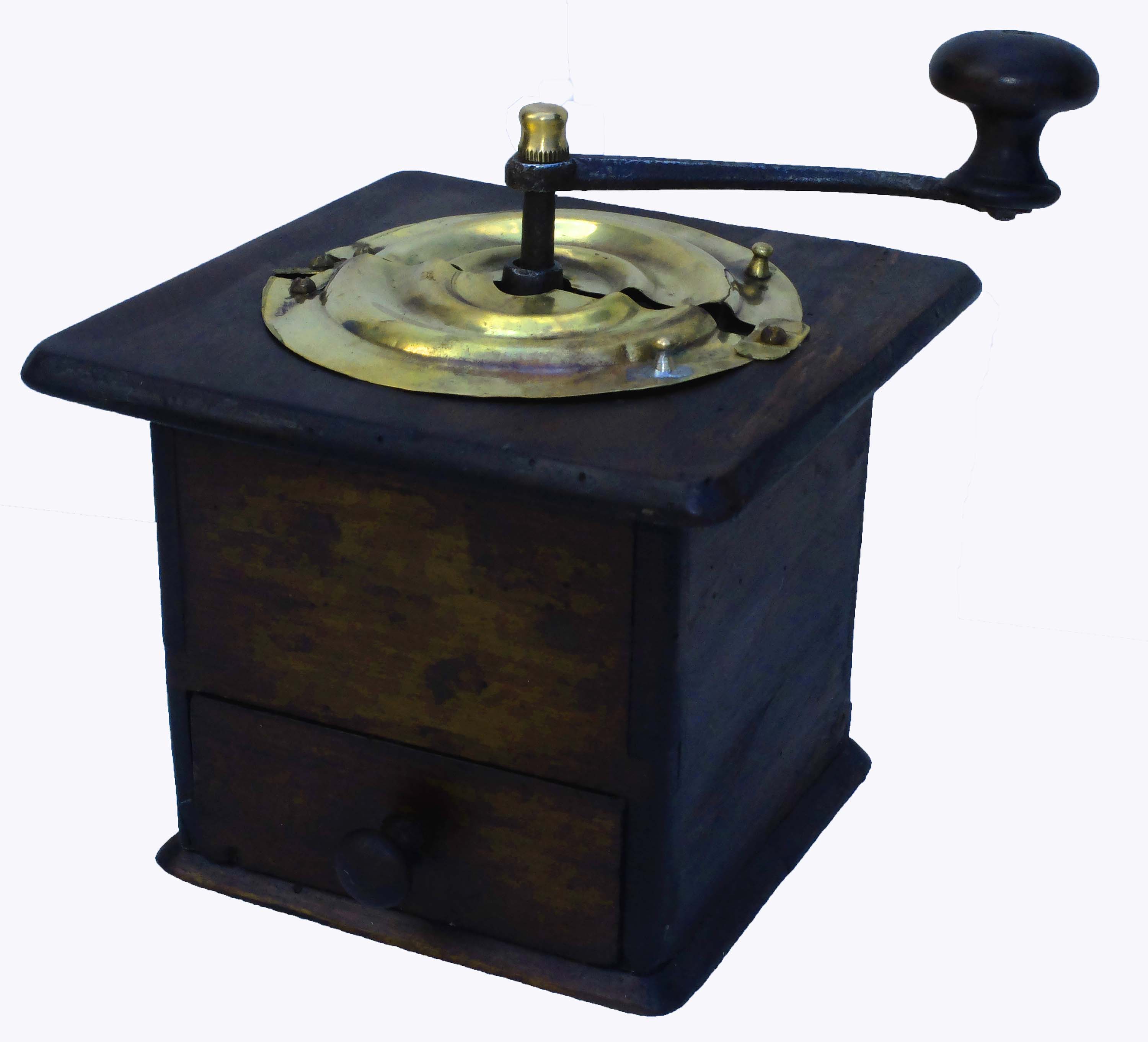 caisse en noyer, assemblage à queue d'aronde, calotte ondulée en laiton avec un téton sur chaque demi-calotte, ouverture "en papillon", ressort de blocage des calottes en laiton, trémie intérieure en laiton.