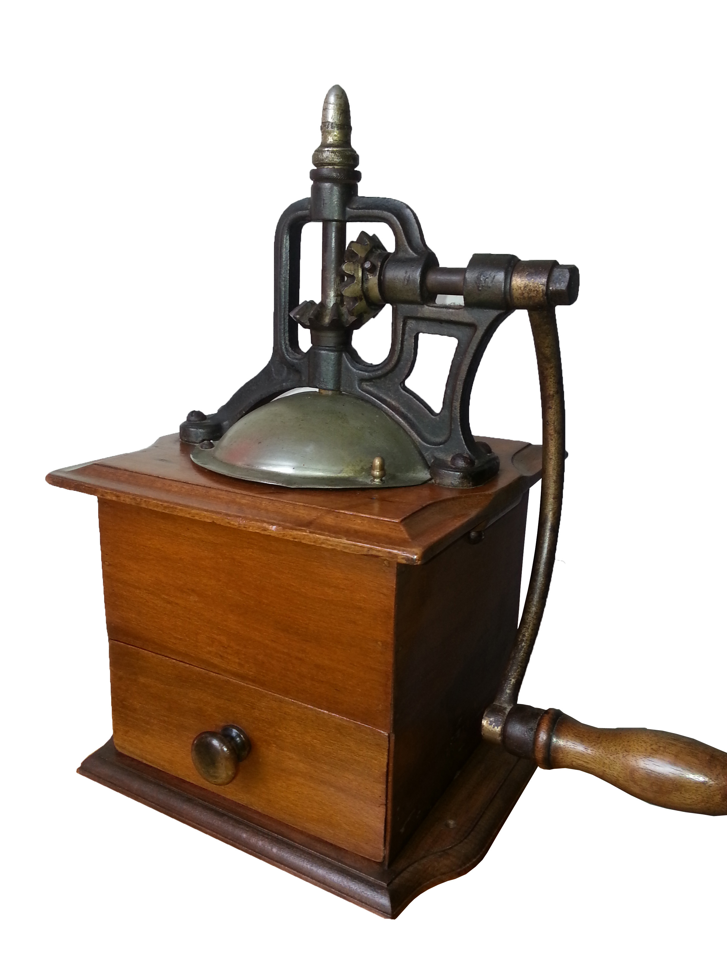 - fin : caisse noyer poli, calotte en laiton nickelé,