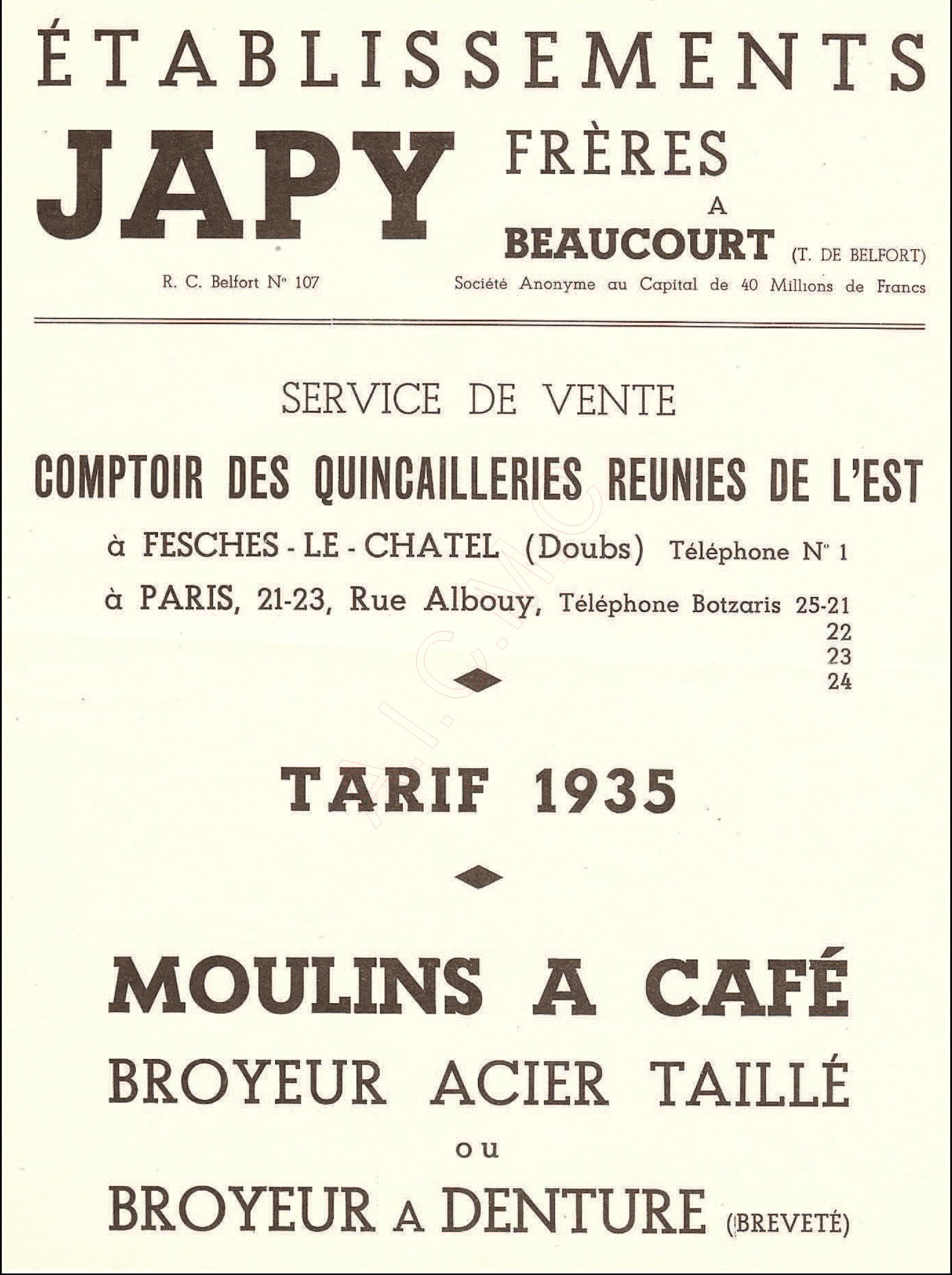 Vous y trouverez les références des différents catalogues que nous avons à notre disposition dans la bibliothèque A.I.C.M.C., à savoir ceux datés de 1882, 1885, 1907, 1922, 1935.
