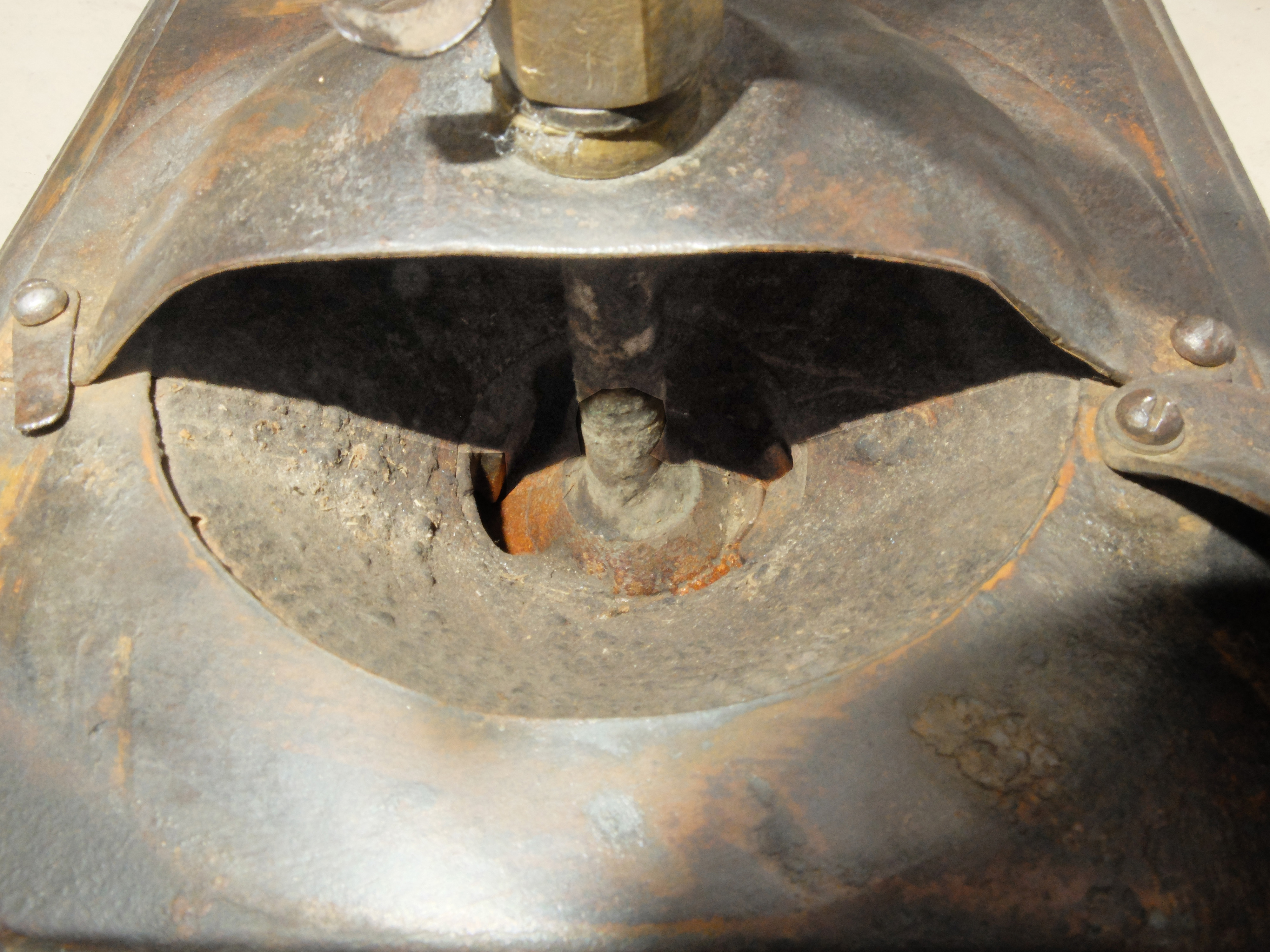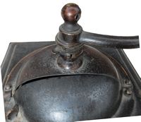 ce système figure sur le catalogue 1879 sur les moulins à trémie ouverte ou calotte plate en laiton.