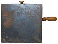Leur socle est renforcé par une plaque en tôle vissée à la planche inférieure par 4 vis. 2 tiges métalliques filetées consolident le moulin.