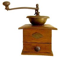 Sont présentés ici les moulins de table en bois à trémie ouverte :