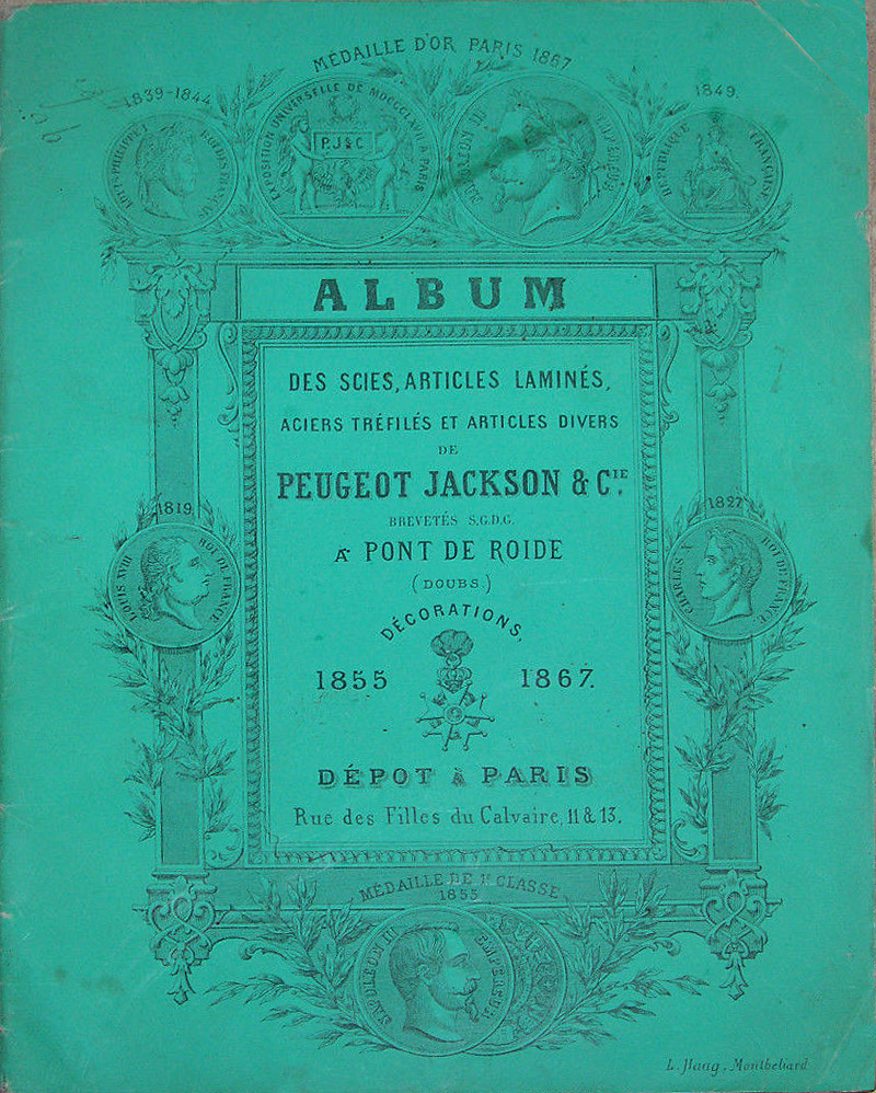 le livre de C. Monnier présente un fac similé de la page de couverture du tarif 1894, Peugeot & Cie successeurs. Il existe un catalogue daté de 1932.