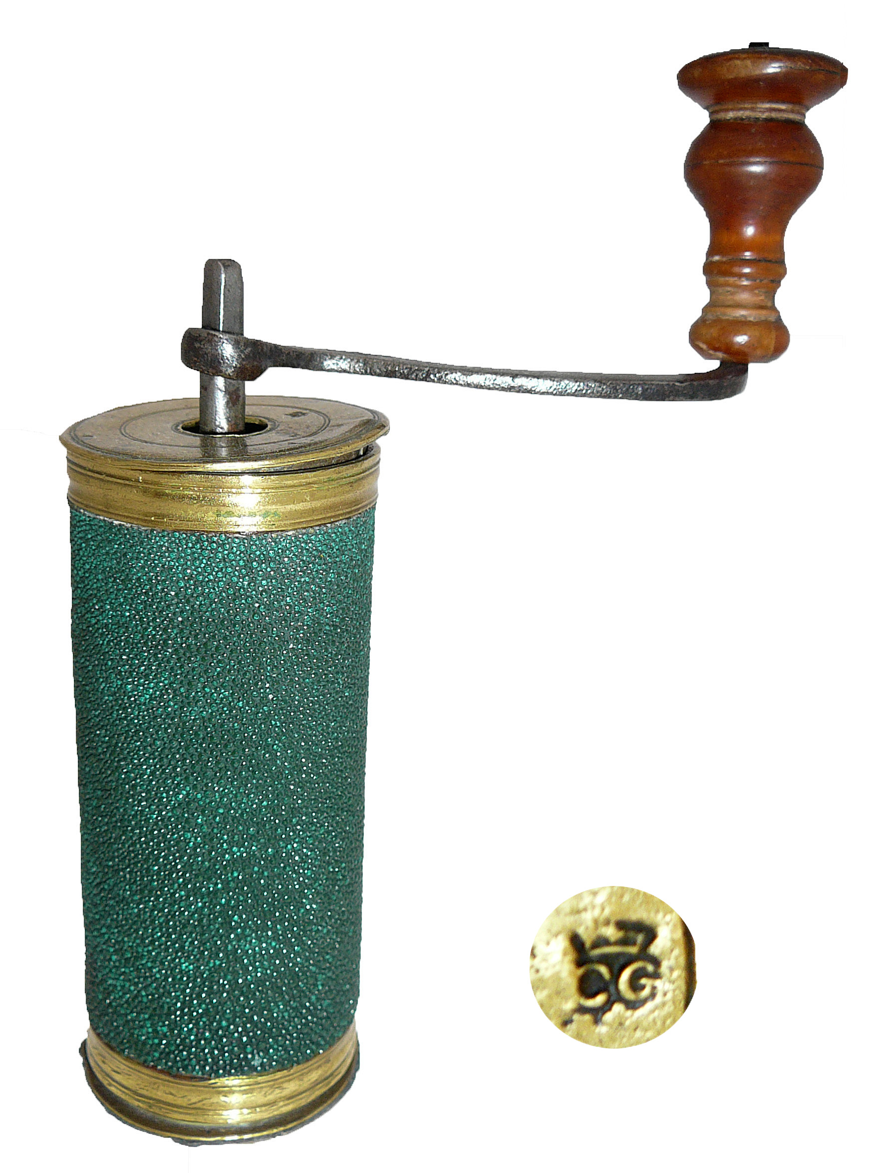 Le “Galuchat”, moulin à café français du 18ème siècle, doit son nom à la peau de requin qui le recouvre.