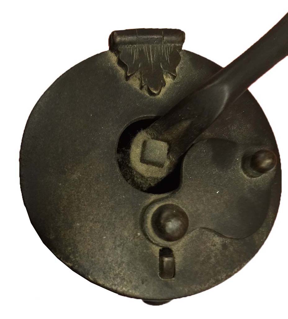La manivelle est toujours cintrée ; elle comporte un renflement dans sa partie médiane. La nille est plutôt longiligne. A priori, les manivelles plates sont des pièces rapportées.