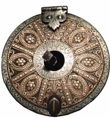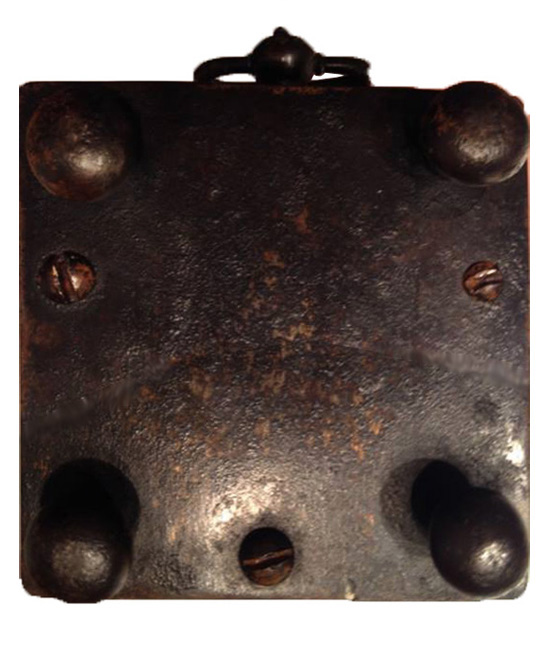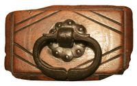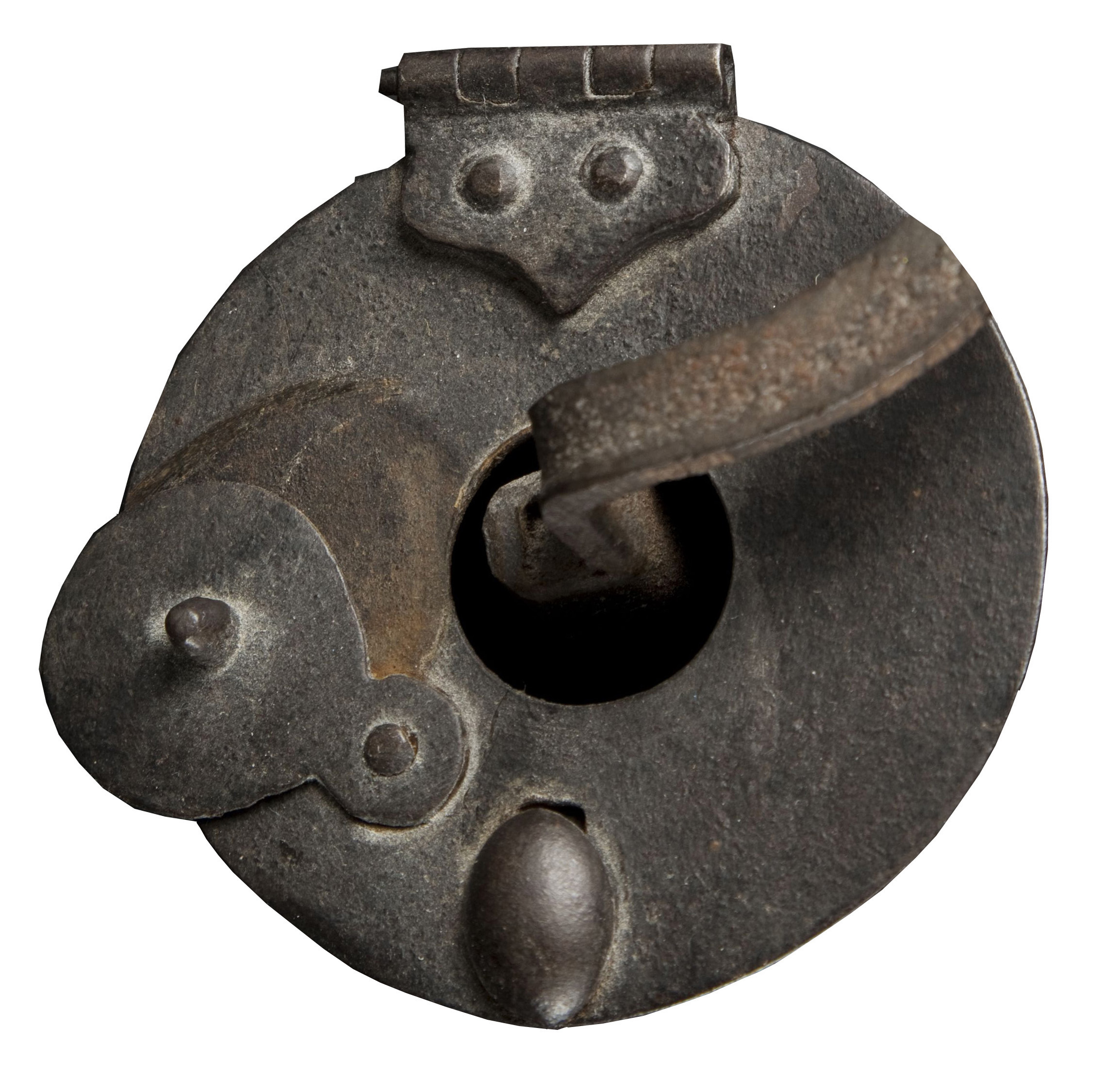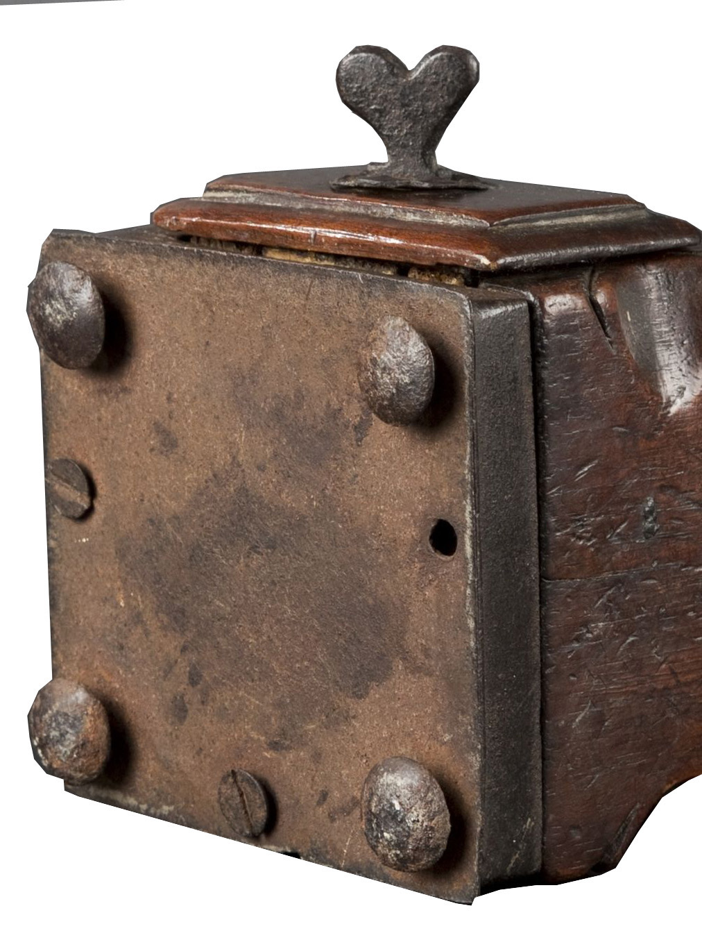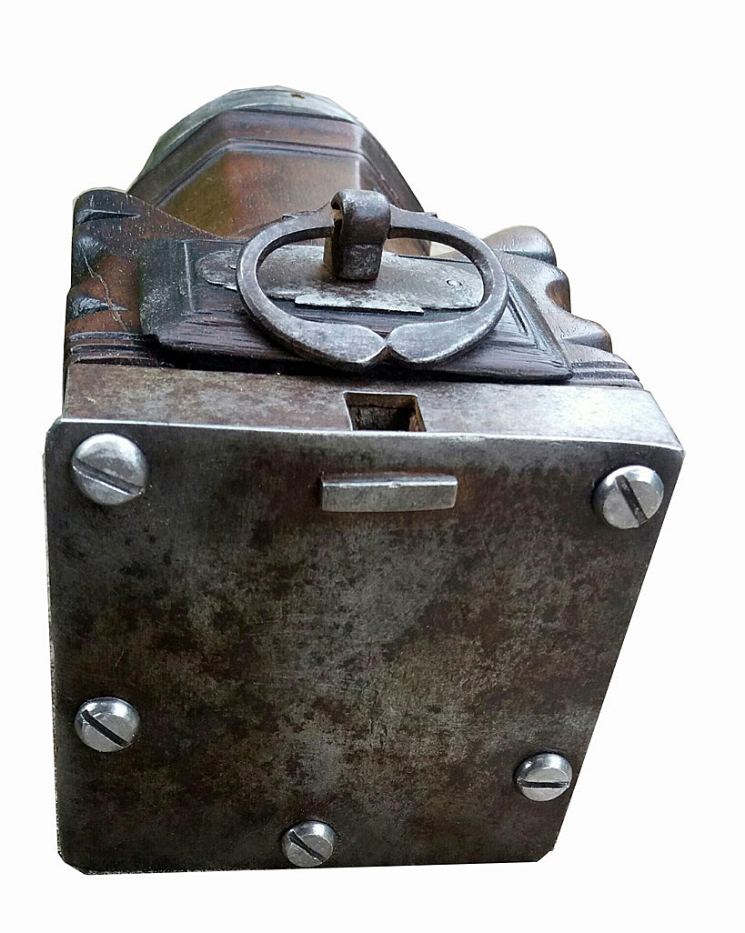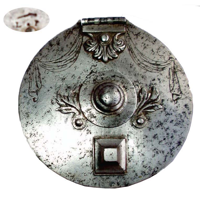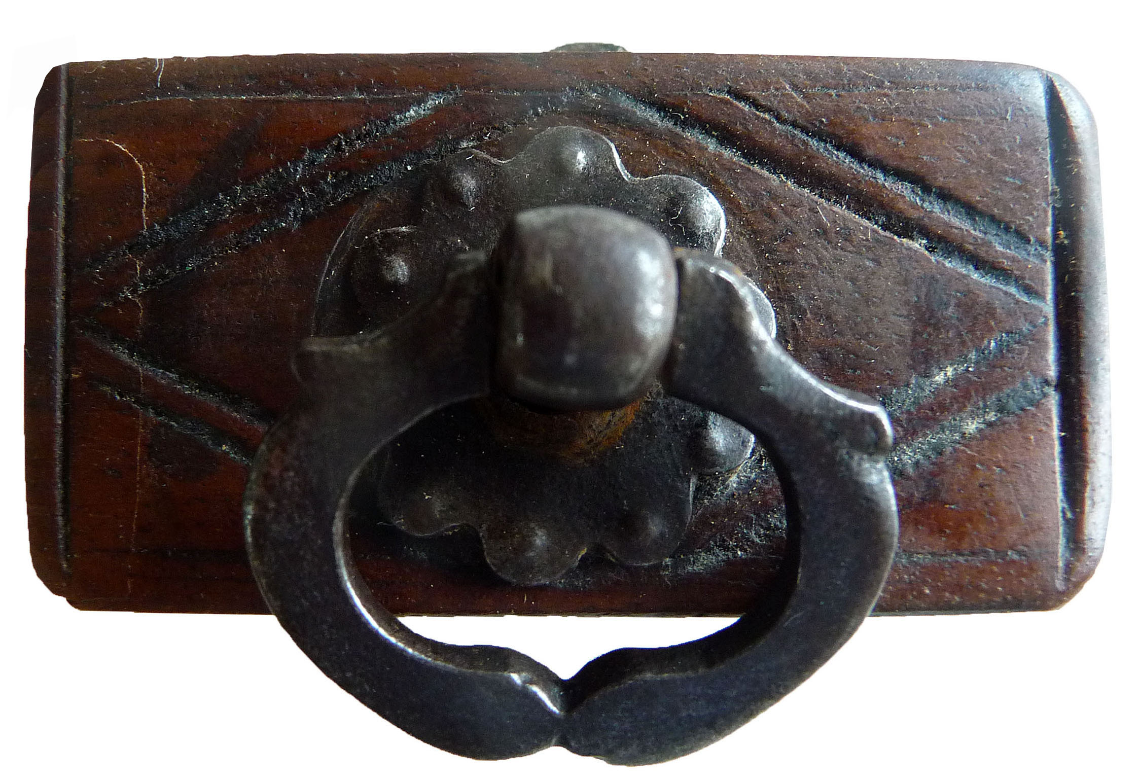 Certains modèles possèdent un mécanisme de fermeture du tiroir ; une tirette est actionnée par une clé en forme de coeur, ou d'une boucle, placée sur une rosace en fer.