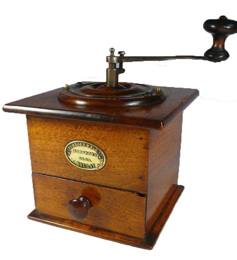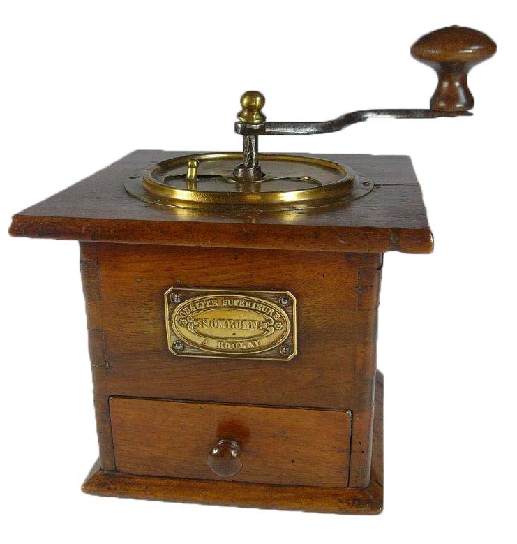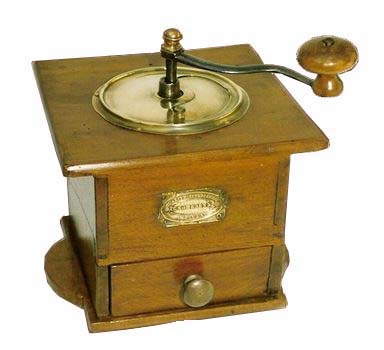 hêtre ou noyer poli, trémie en bois, calotte en laiton, à réglage ordinaire.