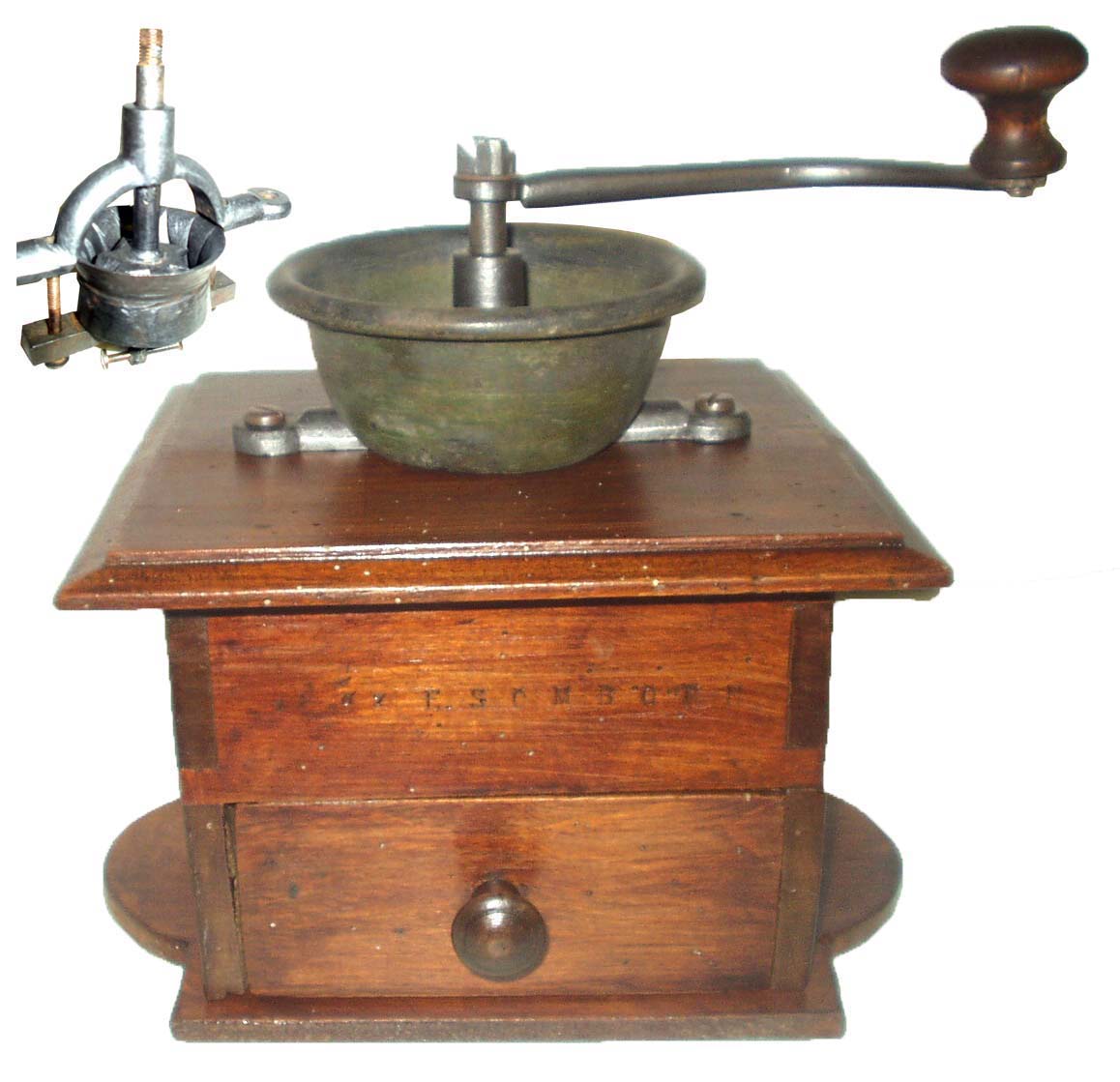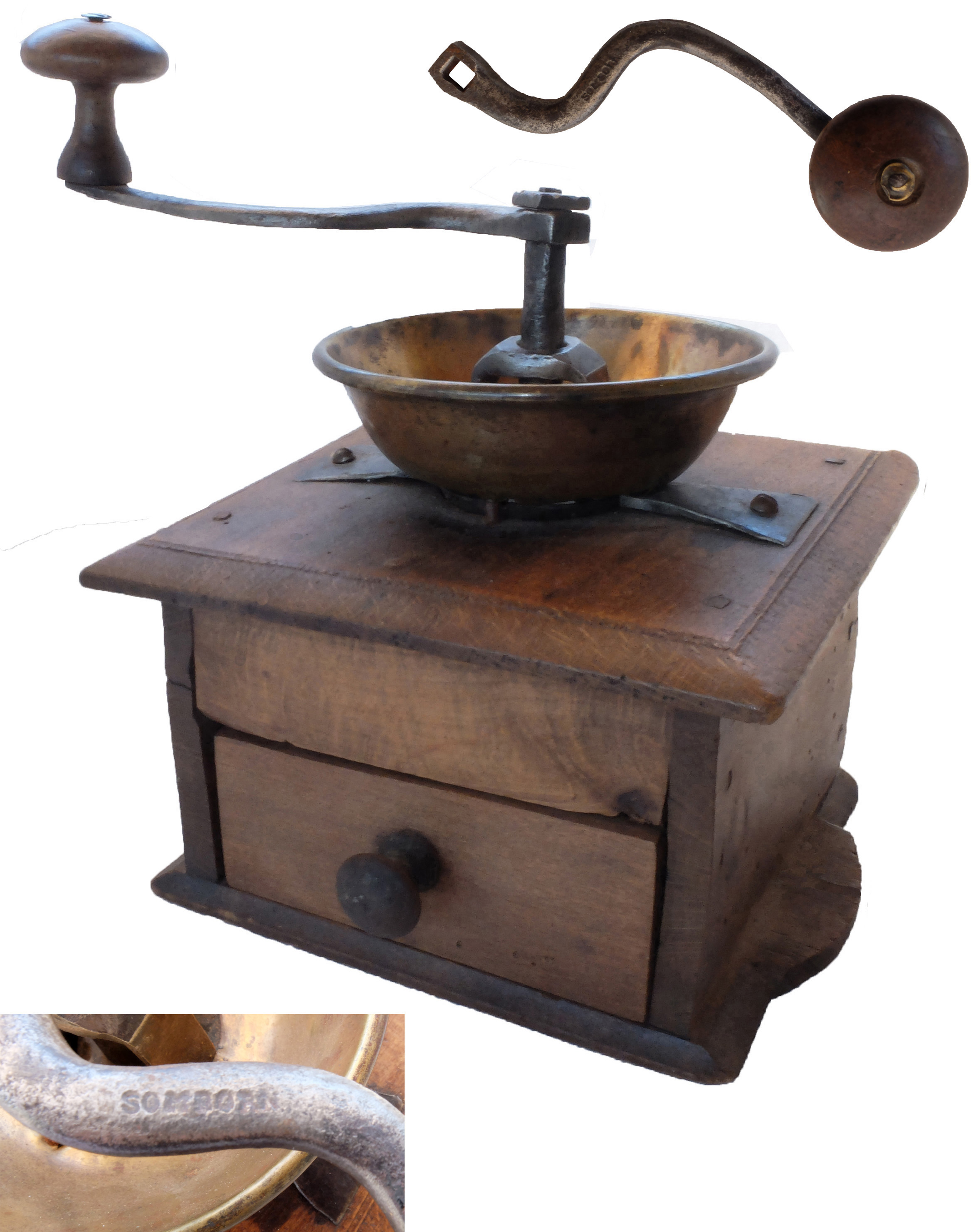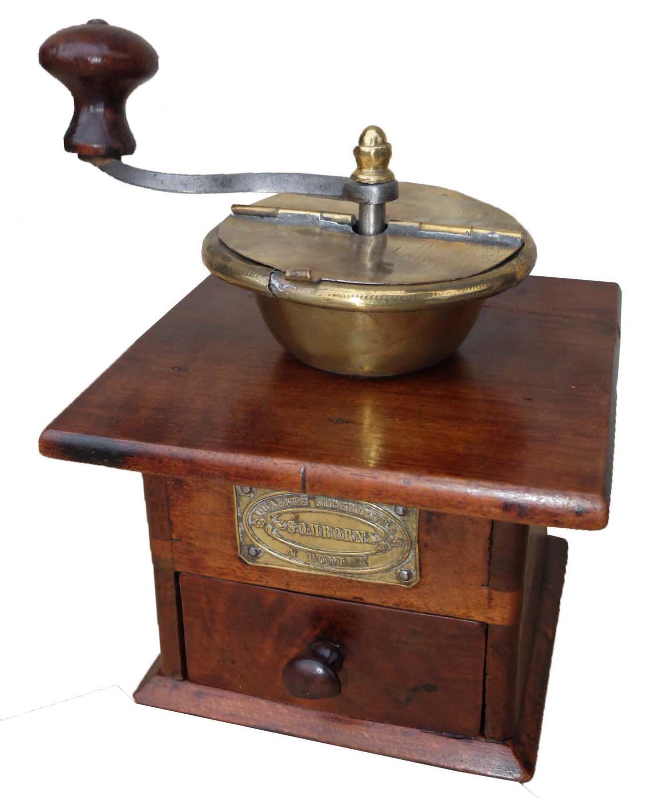 La firme somborn a produit plusieurs moulins à trémie externe sans piedouche, en hêtre ou noyer poli.